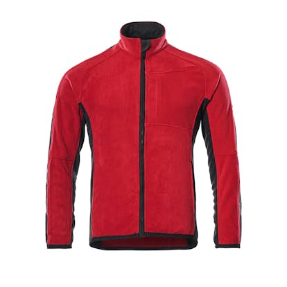 Tvåfärgat. Stängning med blixtlås och invändigt vindfång. Bröstficka med blixtlås. Fickor på framstycket. Innerficka. Ergonomiskt utformade ärmar ger god rörelsefrihet. Ryggen är förlängd. Resår vid handleden och i nederkanten. Reflexeffekter.