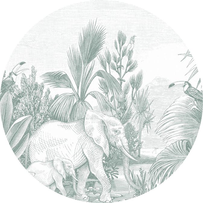 Denna självhväftande runda tapet med ett djungelmönster i grönt ger en varm, glad och livfull stämning i barnrummet. Släpp loss din och dina barns fantasi och skapa ett fantastiskt rum att drömma och leka i. Mjuka toner av rosa, grönt, beiget och brunt gör sig perfekt i barnrummet. Skapa en fin stämning med djurtapeter som väcker tankar, idéer och tankar hos barn.