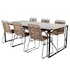 Skapa en härlig och inbjudande känsla i din trädgård med denna stilsäkra matgrupp. Matgrupp Texas med bordskiva i i glas och teak. Matgruppen kommer tillsammans med 6st Lindos matstolar med en ram i svart stål och en sits i rep.