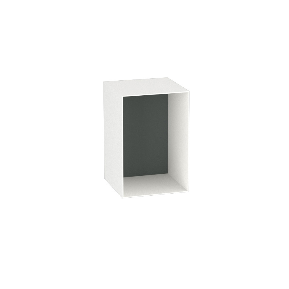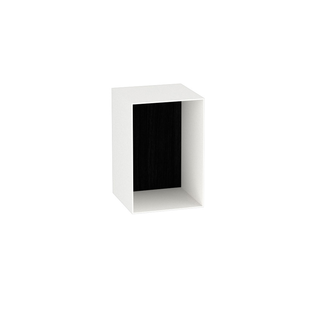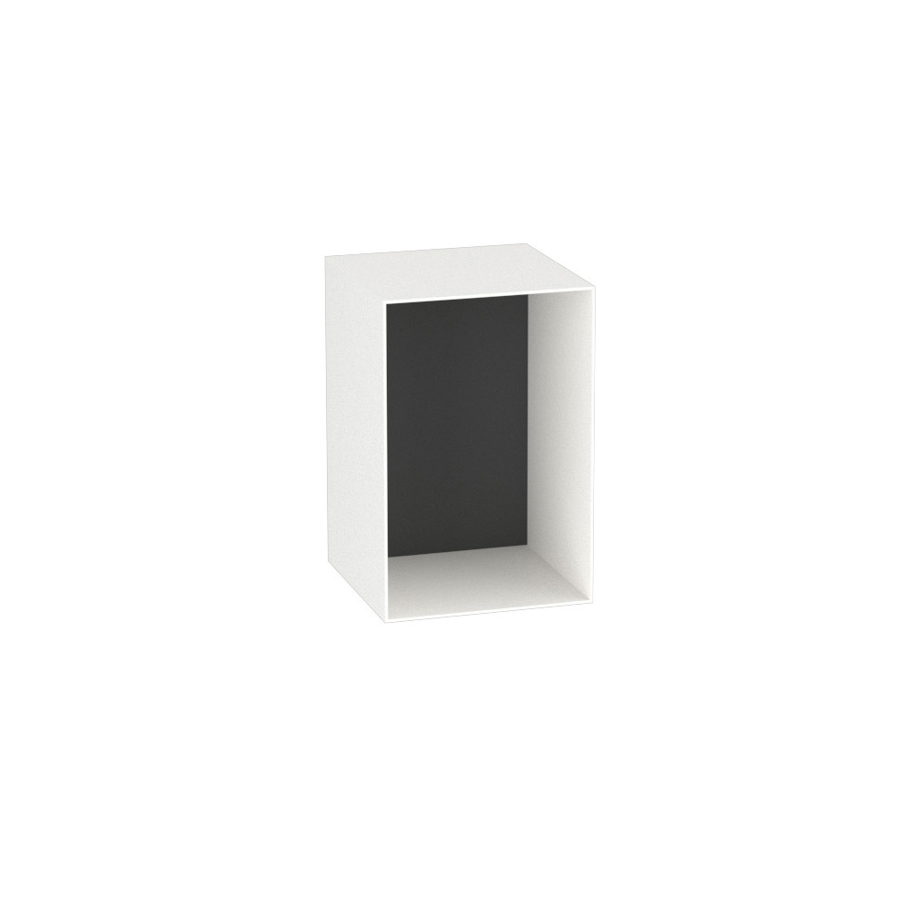 Hylla Ballingslöv Showoff med modern stil monteras stående eller liggade. Hyllan är vit men ryggen finns i flera olika färger som går utmärkt att blanda. Stommen är av 3 mm pulverlackerad plåt med en utbytbar rygg av 12 mm målad eller fanerad MDF.