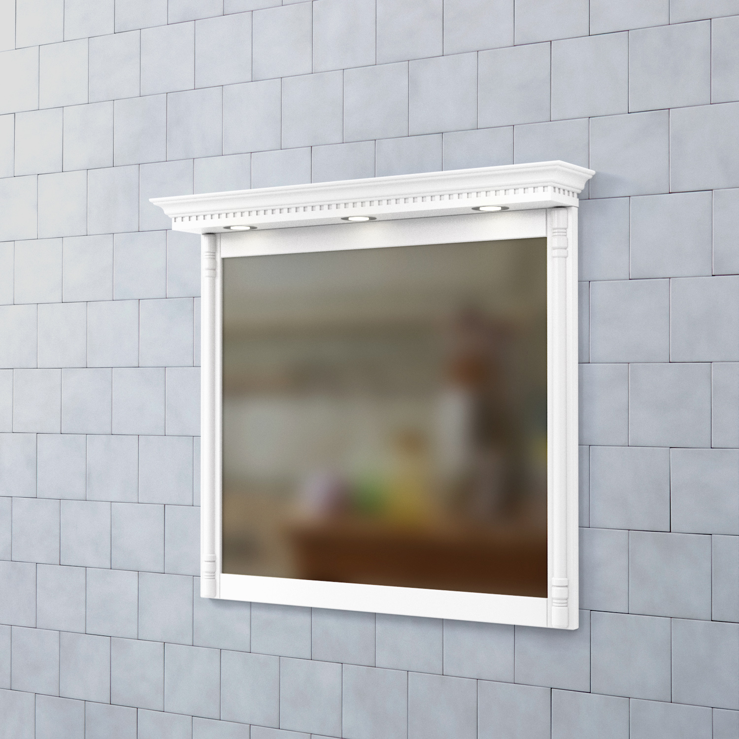 Spegel Valhall med Belysning från Björbo Badrum är en vacker och välarbetad badrumsspegel. Denna spegel har en karaktäristisk tandad krönlist med infälld LED-belysning vilket ger spegeln ett klassiskt, högromantiskt intryck.