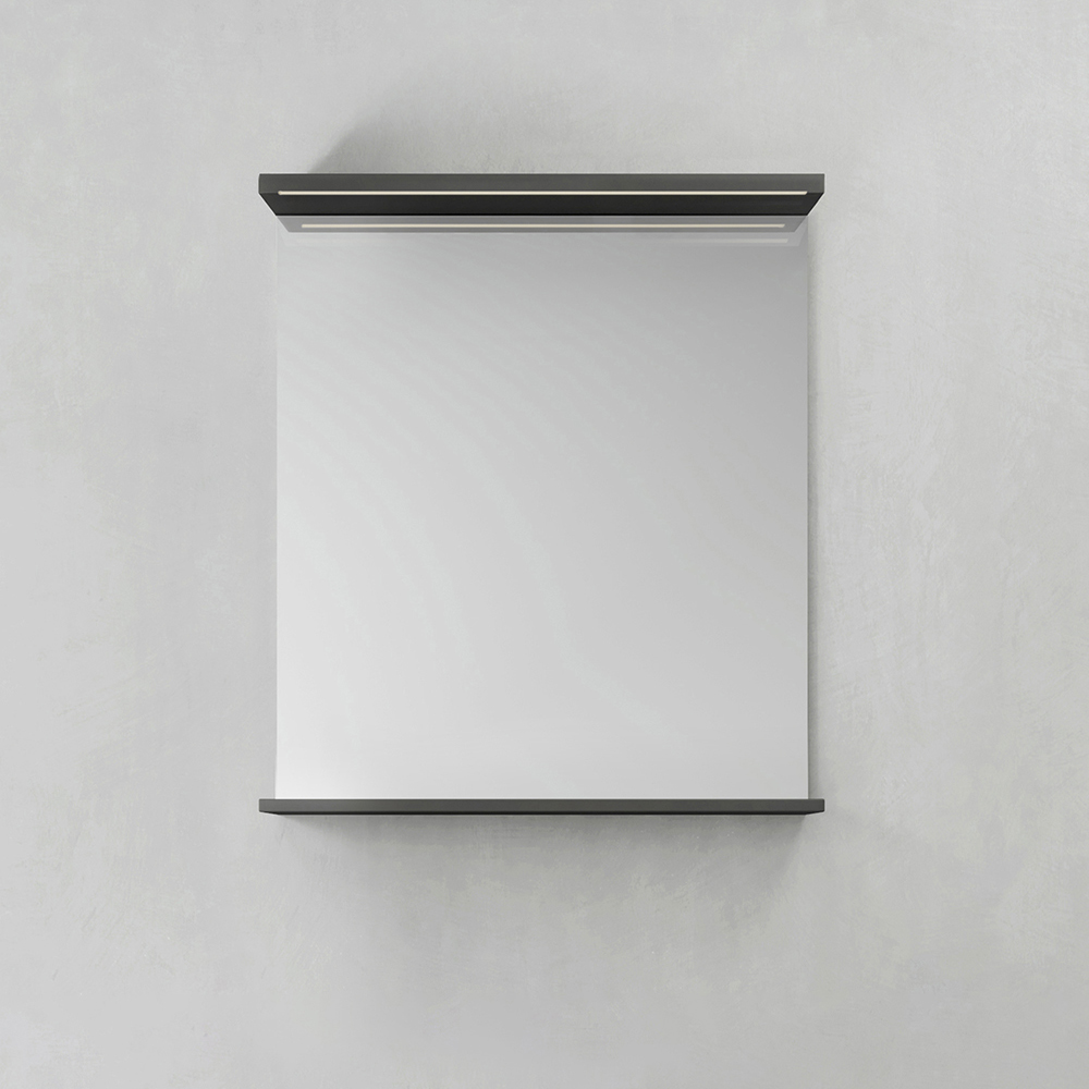 Spegel med funktionell belysning med infälld LED-profil eller LED-spots med varmvitt ljus.