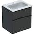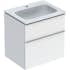 Tvättställsskåp Geberit iCon med Tvättställ är ett stilrent möbelpaket med tvättställ och tunn design. Möbeln har två lådor med tillhörande handtag och mjukstängande system.