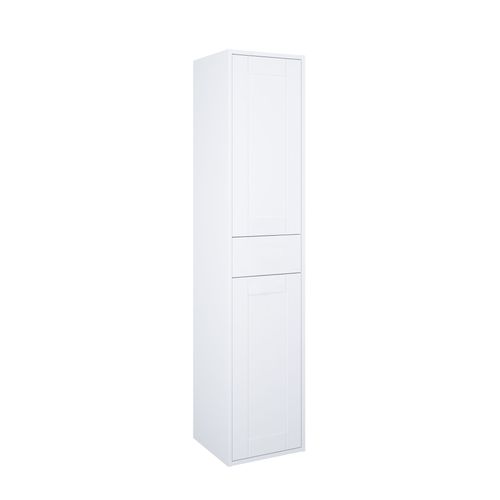 Högskåp Alterna Gabriella i klassisk design med två mjukstängande dörrar och en låda. Dörrarna är vändbara men levereras vänstermonterade. Alla möbler i Gabriella serien är tillverkade i fukttrög MDF.