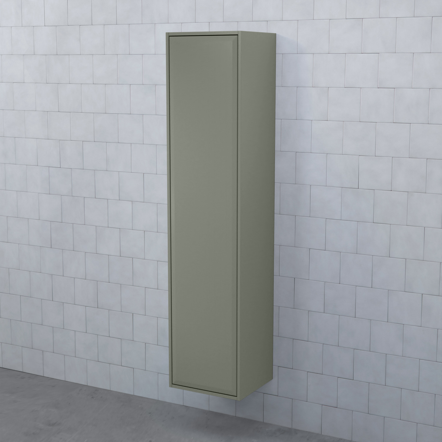 Högskåp Björbo Badrum Mejda är ett elegant högskåp tillverkat av målad MDF. Skåpets lucka är självstängande och dämpad. På insidan av luckan finns en praktisk dörrhylla i svartbetsat trä.