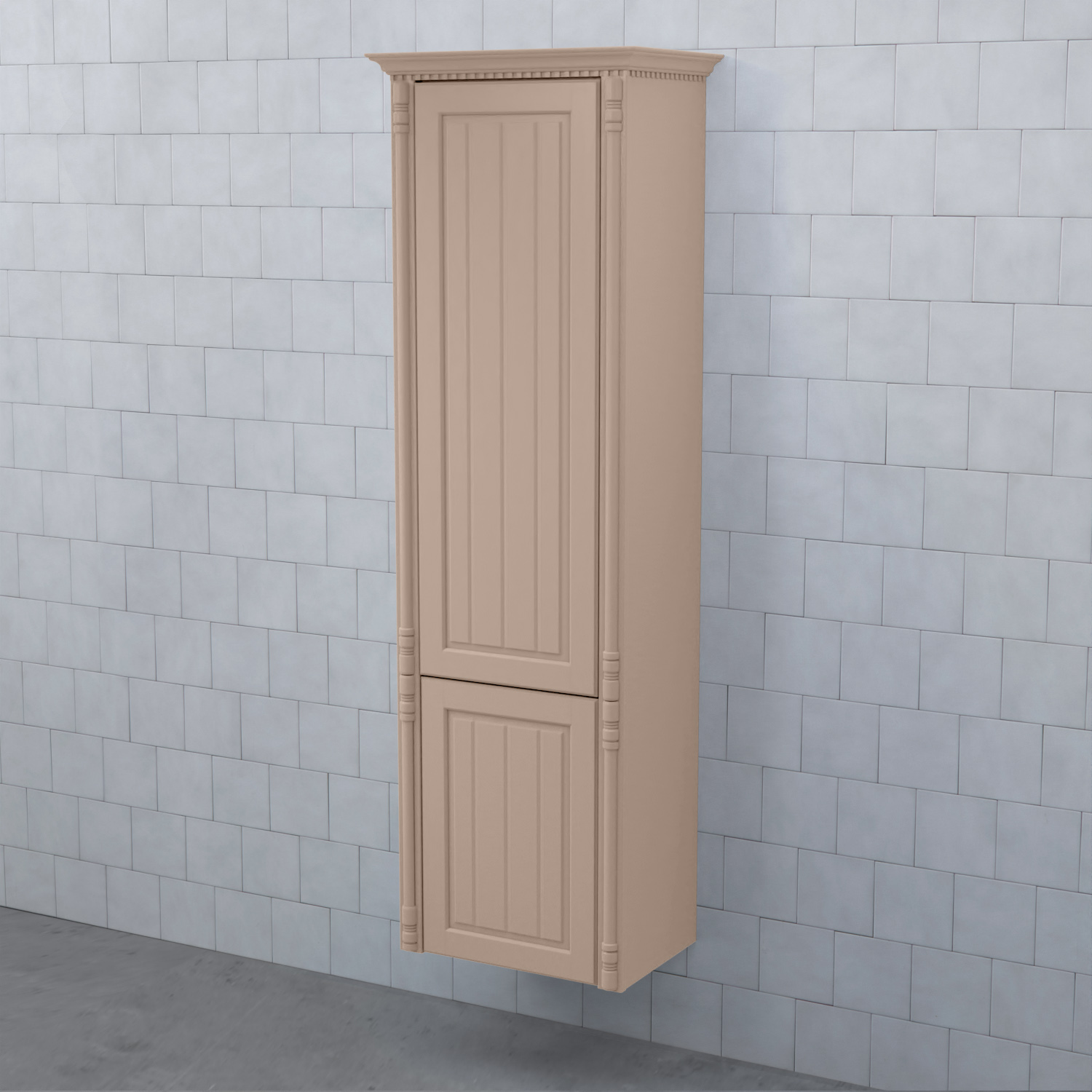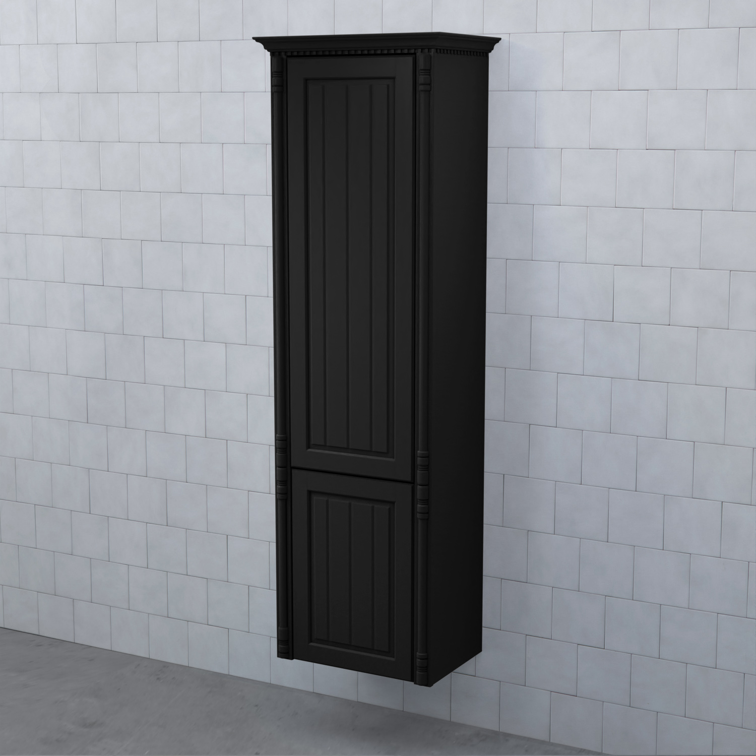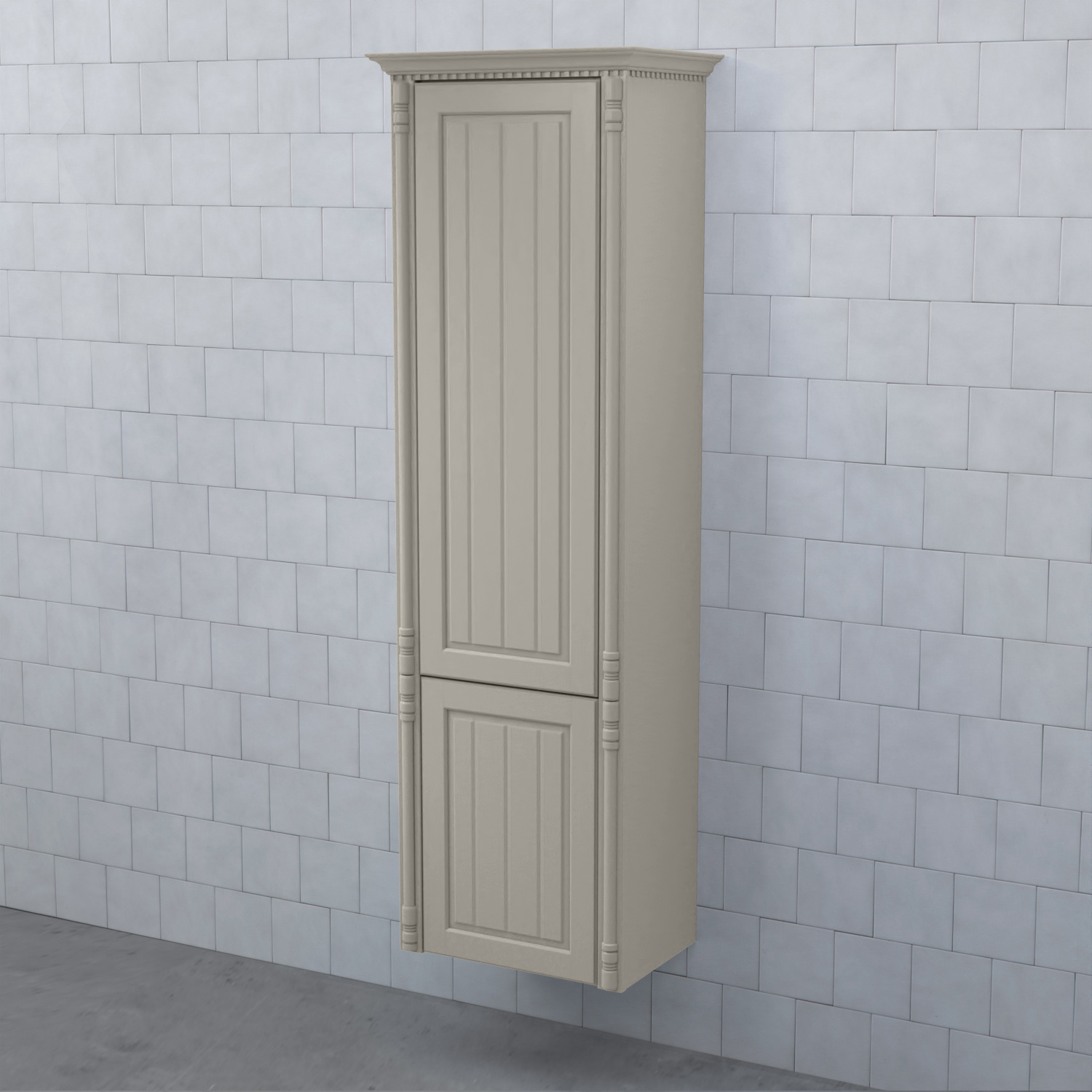 Högskåp Valhall med Hög och Låg Lucka från Björbo Badrum är ett klassiskt badrumsskåp med en tandad krönlist och pelare som stilfullt ramar in möbeln. Skåpets stomme är gjord av målad MDF med vackra ramluckor med utfrästa spår.