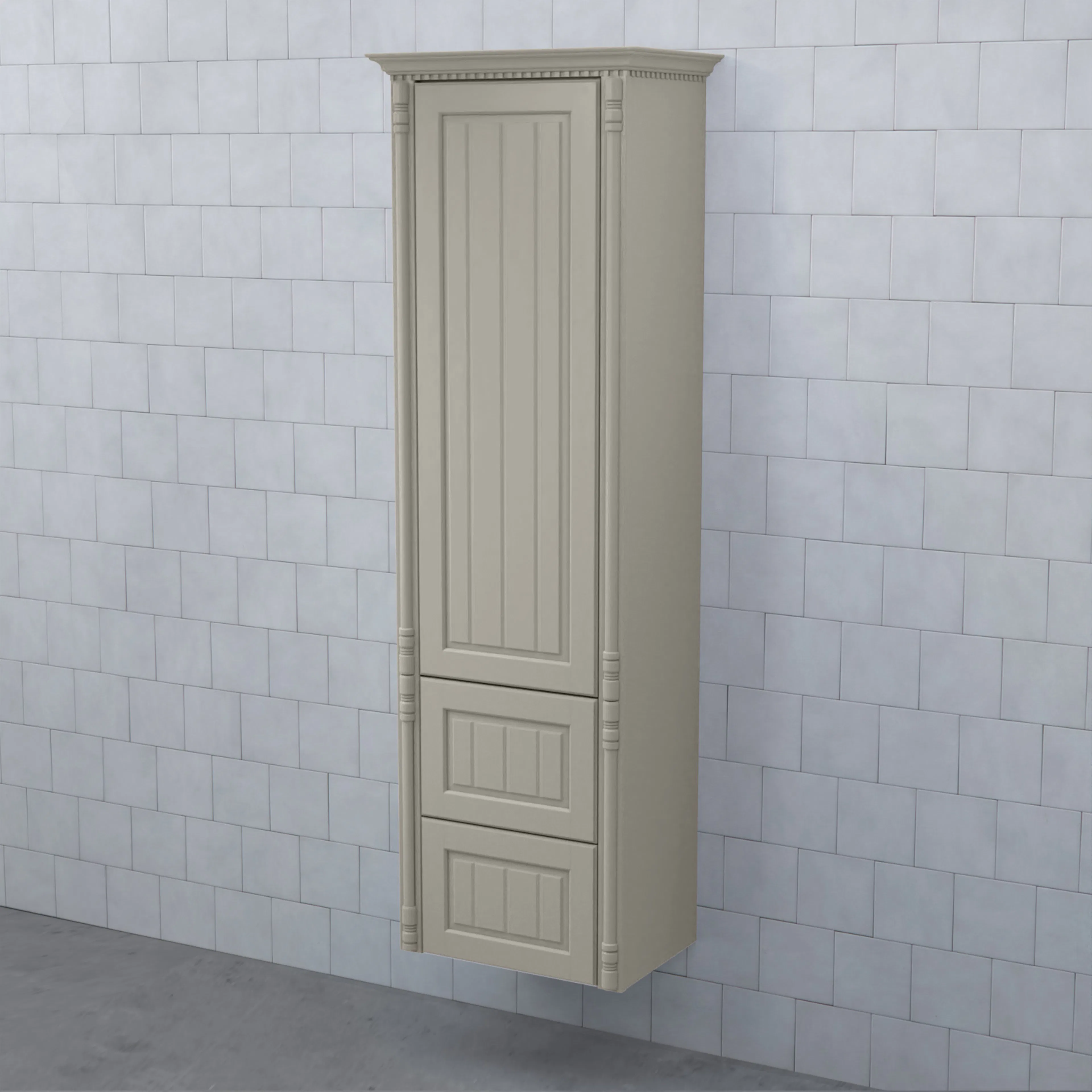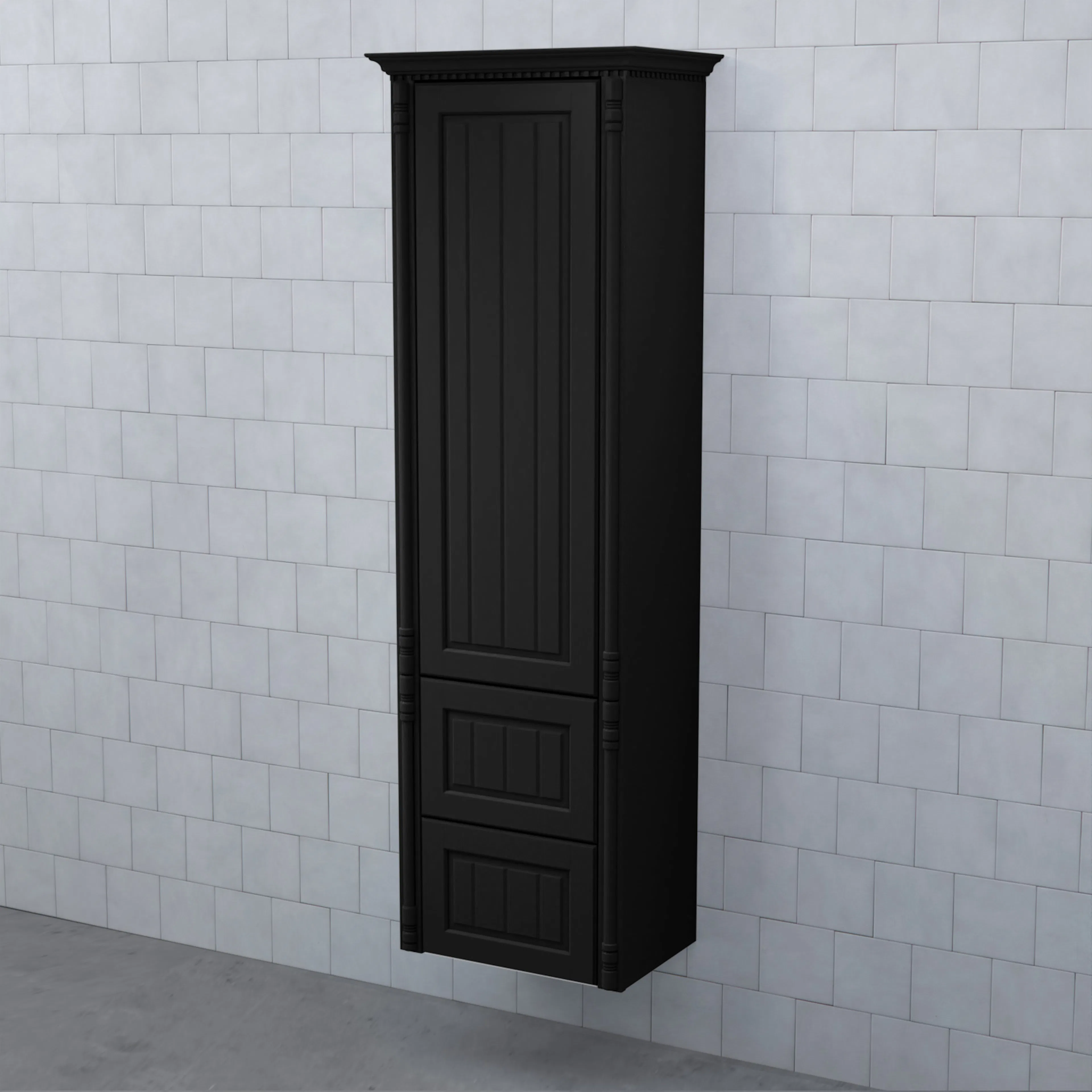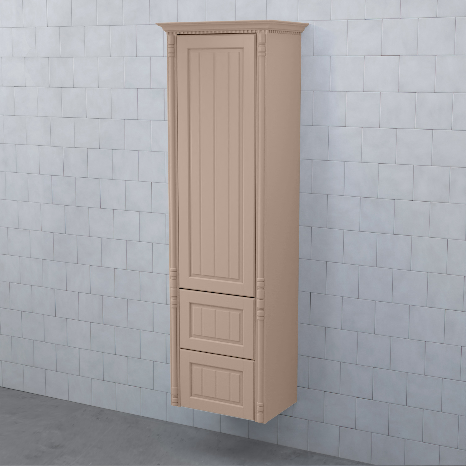 Högskåp Valhall med Lucka och 2 Lådor från Björbo Badrum är ett stilrent badrumsskåp med en lucka i övre delen av skåpet och två lådor i nederdelen. Lådorna är stabila fullutdraglådor med dämpning och självindrag. Skåpet har en tandad krönlist och pelare som stilfullt ramar in möbeln. Stommen är gjord av målad MDF med vackra ramluckor med utfrästa spår.