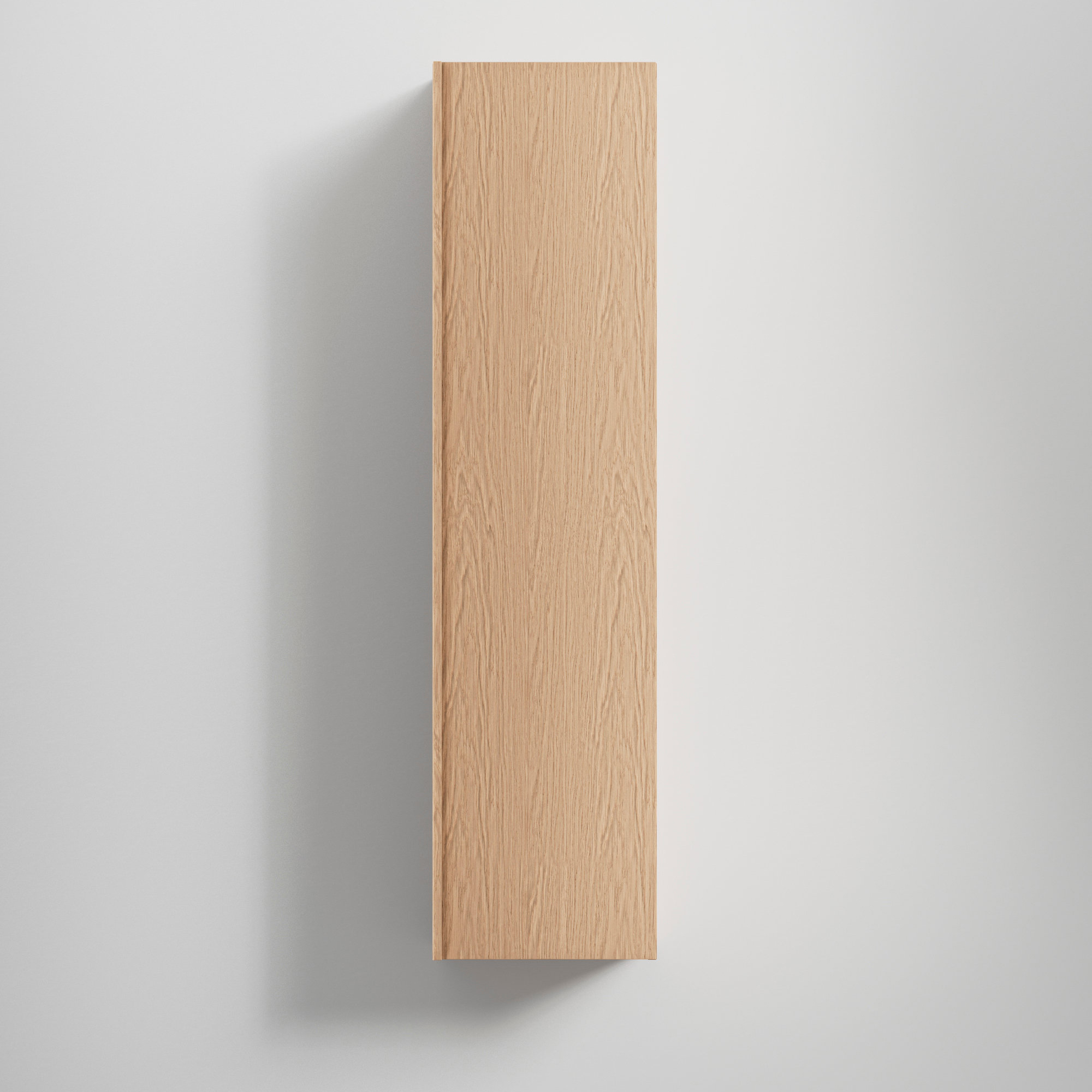 Högskåp INR Carve 40/30 är ett stilrent högskåp i fanér med en distinkt front i större, mer levande mönster än INRs övriga högskåp – perfekt för dig som vill addera karaktär till badrummet. Det naturliga uttrycket skapas av samma typ av fanér som på INR högskåp Grip och ger en varm, exklusiv känsla som passar perfekt till INRs möbelserie Terra och harmonierar vackert med INRs möbelserie Core. Välj mellan Natural Oak och Dark Oak för att skapa en enhetlig stil i ditt badrum. Den integrerade grepplisten i massiv ek löper längs hela dörrens långsida och blir en elegant del av designen. Med sitt grunda djup och något bredare format erbjuder Carve smart förvaring även i mindre badrum utan att kompromissa med designen. Dörren kan monteras både höger- och vänsterhängd och stängs mjukt med integrerad soft close.