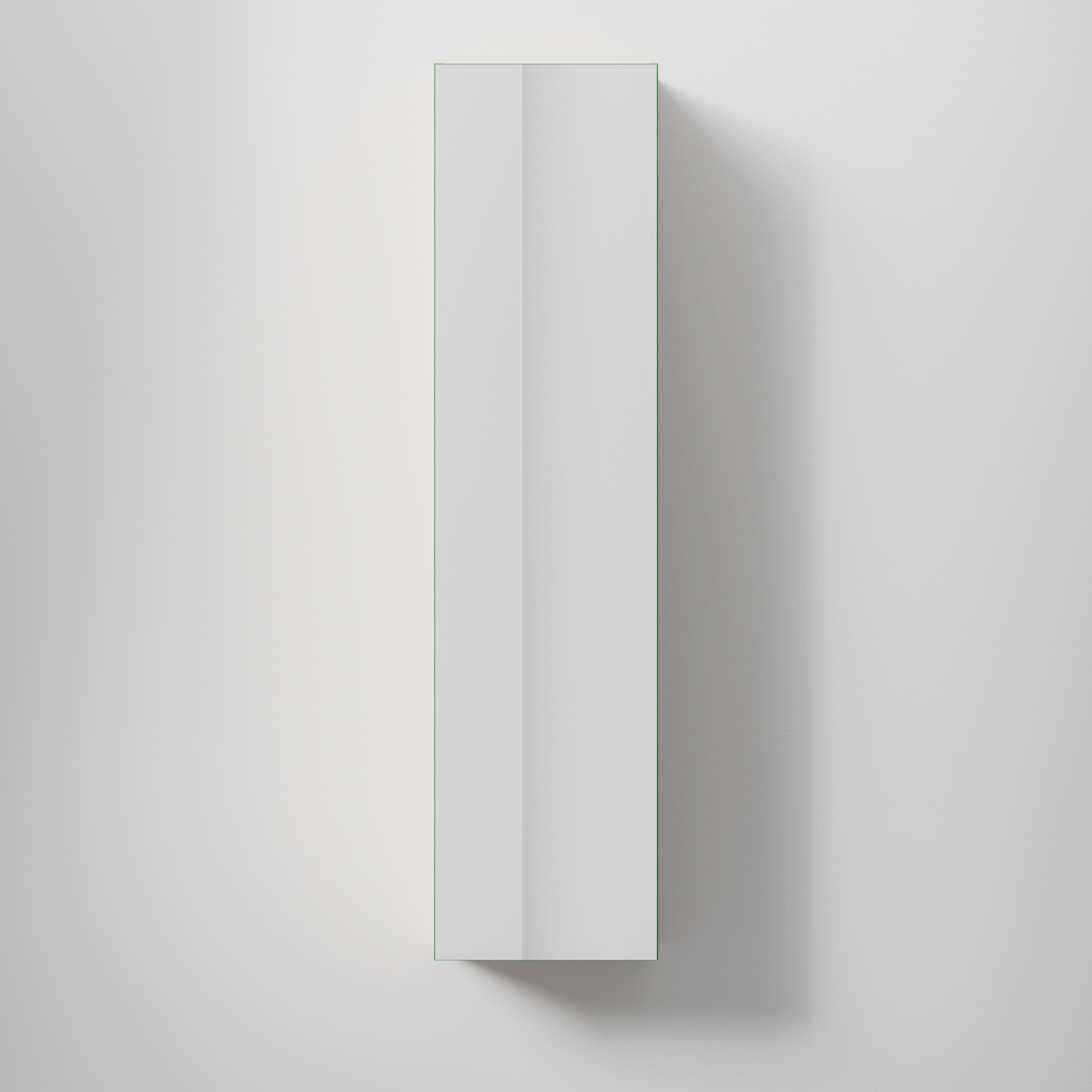 Skåpet finns med sidor i fanér eller i valfri NCS-färg, så att du kan anpassa det efter din inredning. Med sitt grunda djup på 30 cm fungerar det lika bra i små som stora badrum, och tack vare push-open och ett stilrent grepp i aluminium kan flera skåp placeras intill varandra för en enhetlig och harmonisk lösning. Invändigt är skåpet utrustat med ett fast hyllplan i trä och fyra justerbara hyllplan i 6 mm härdat säkerhetsglas, vilket ger flexibel och organiserad förvaring.