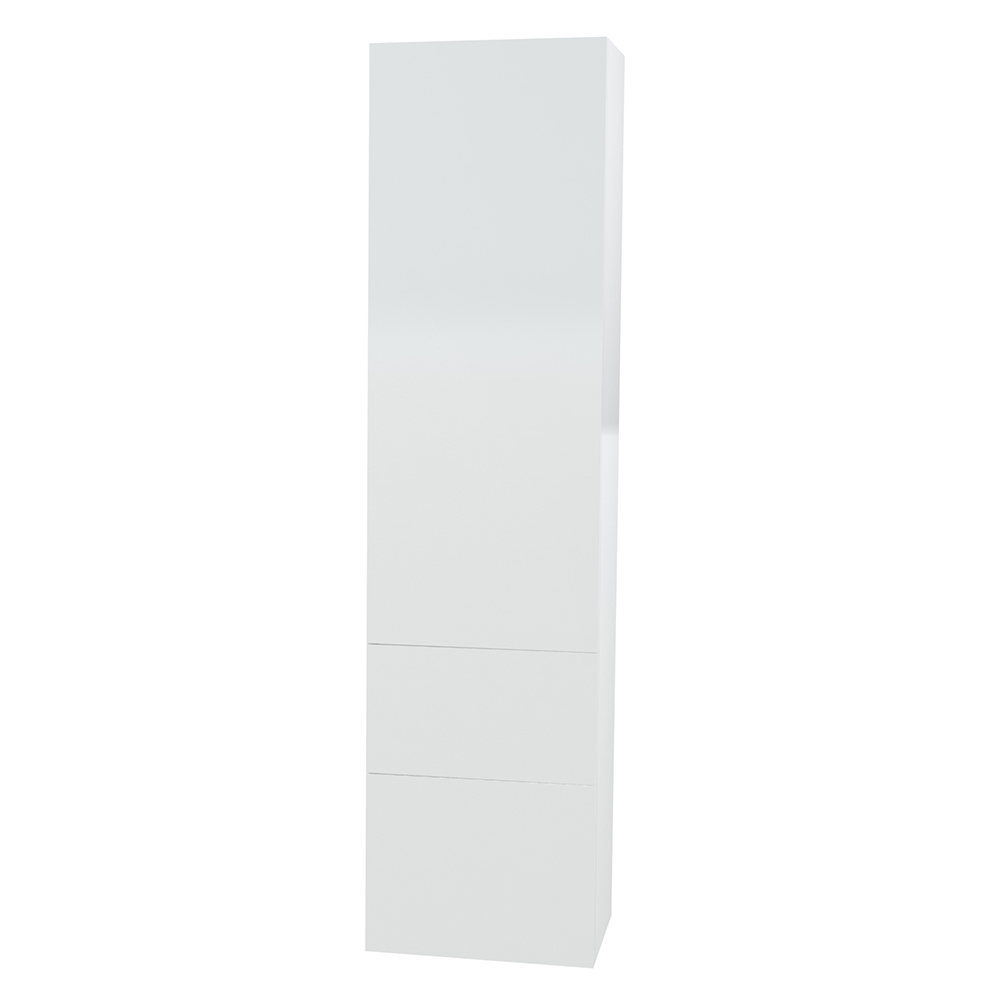 Högskåpet har två utdragbara lådor utrustade med Anti-glid mattor. Nedre lådan är även utrustad med stopplist. Mjukstängande dörr. Fyra hyllor varav tre är flyttbara och en är fast för stabilitet. New York - Ren och avskalad elegans med en inbjudande yta och ett oanat djup. En tydlig spegling av den moderna människans strävan efter enkel skönhet och harmoni. Luckor och lådor är 19 mm tjocka och ger ett gediget intryck. Extra tjocka kantlister som håller längre.