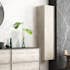 Både kommoder och högskåp finns i färgalternativen Ek, Valnöt, Grå Furu och Beige Mink, med autentiska träimitationer som bidrar till en varm och naturlig känsla i badrummet. Den laminerade MDF-ytan är fukttålig och hållbar, vilket gör möblerna särskilt lämpade för badrumsmiljöer. De subtila nyanserna och detaljerna i träimitationen skapar en känsla av exklusivitet och stil, medan den beigelackerade ytan ger en mer sober känsla.