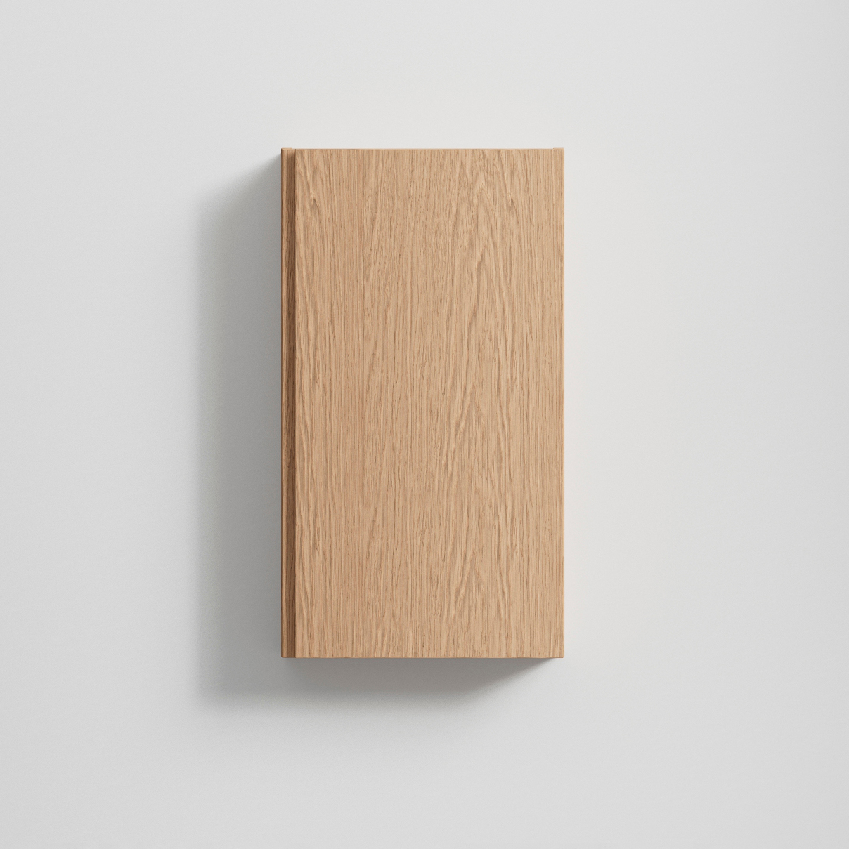 Väggskåp INR Grip 40/15 har en elegant och harmonisk front med integrerad grepplist i massivt ek som löper längs hela långsidan och blir en naturlig del av designen. I fanér får du en front med ett större, mer levande mönster än på INRs övriga väggskåp. Det ger ett naturligt och varmt uttryck som passar särskilt bra till INRs möbleserie Terra, men som även harmonierar fint med möbelserie Core.