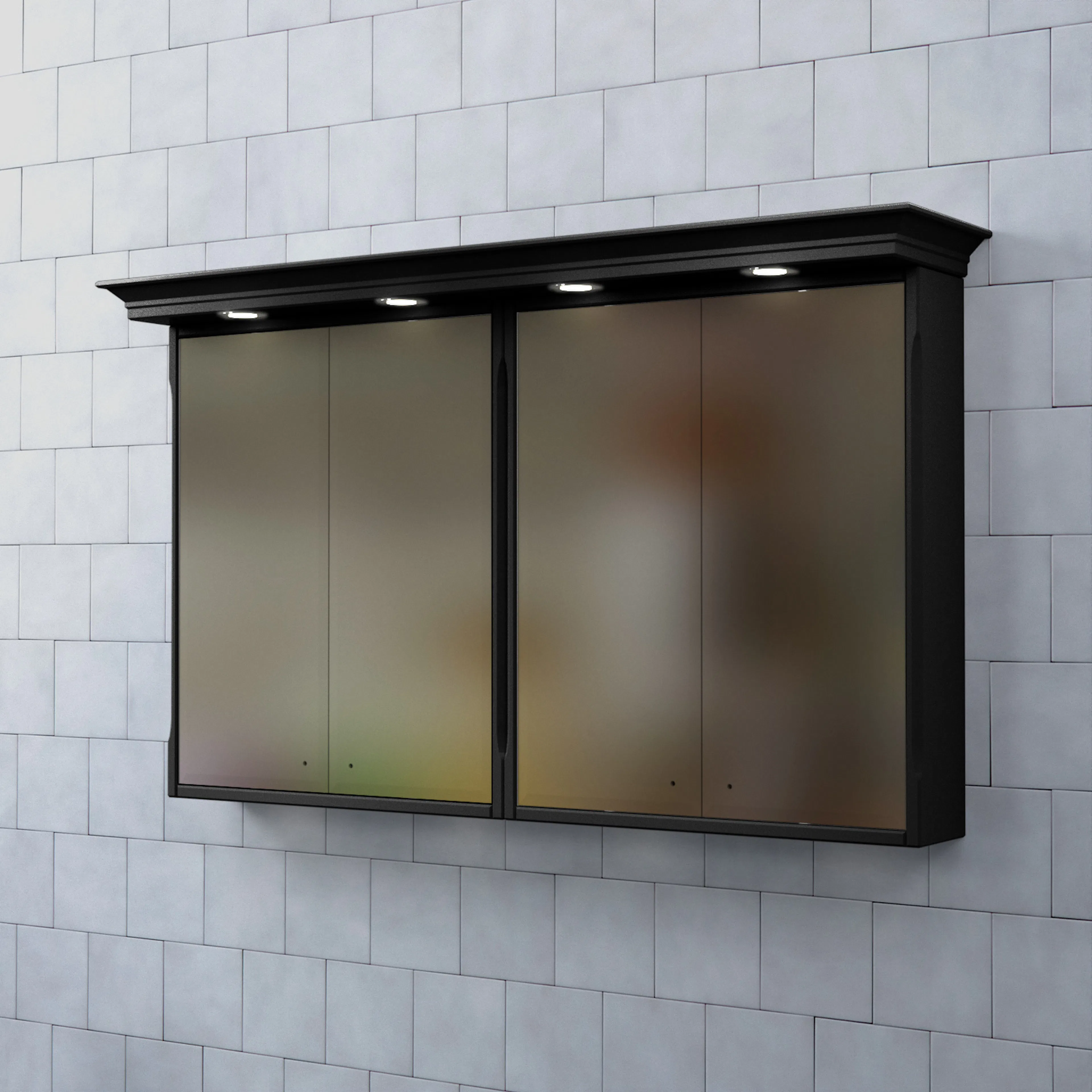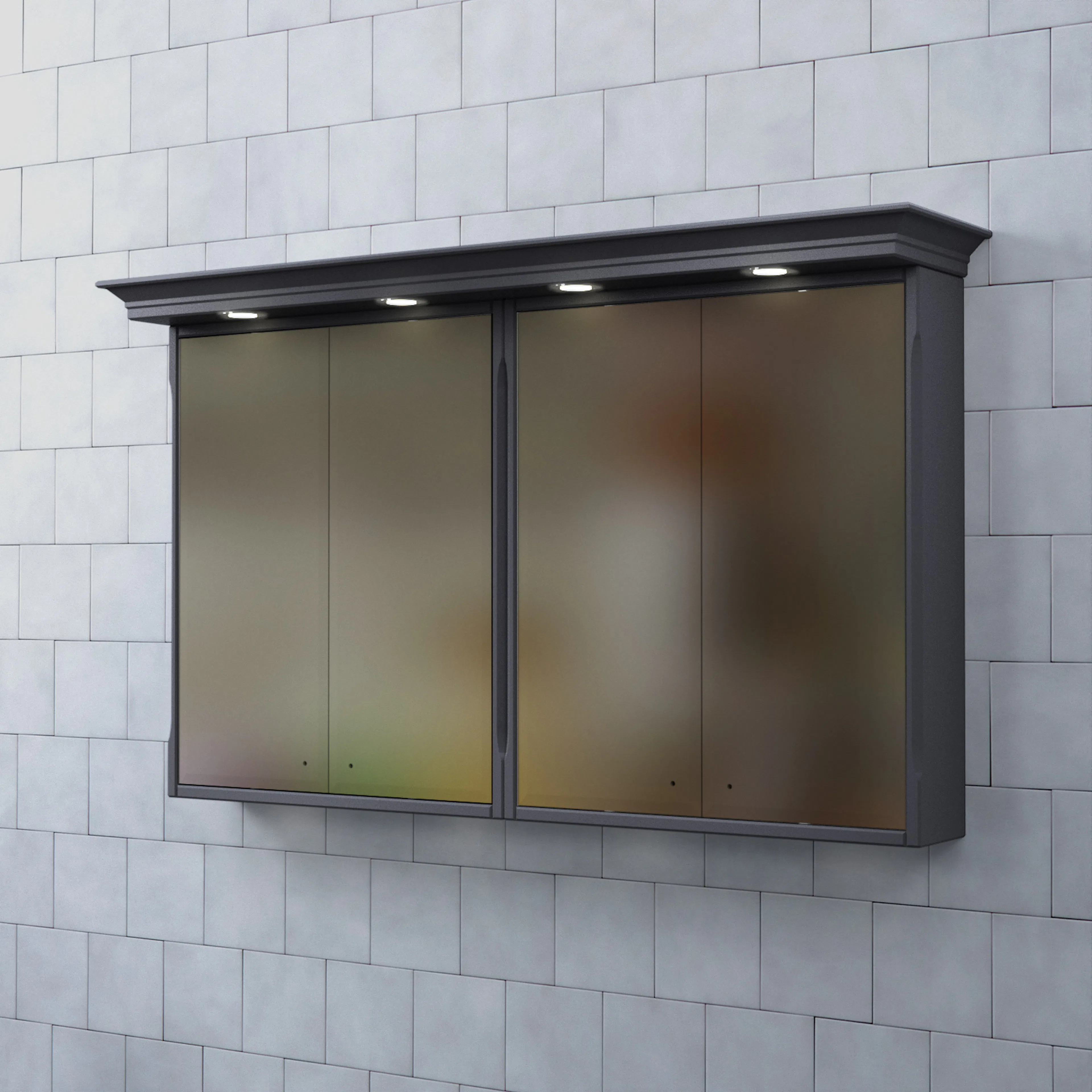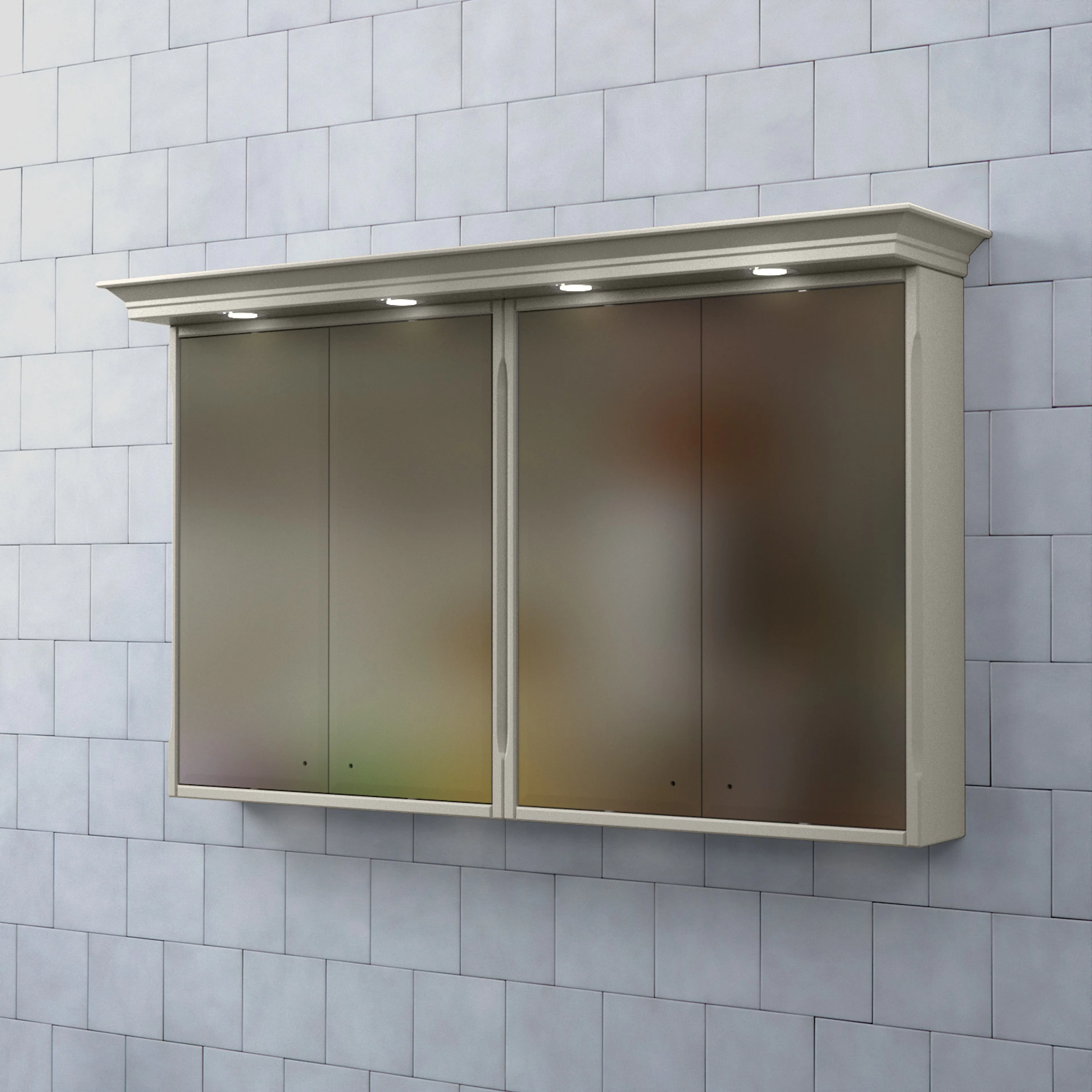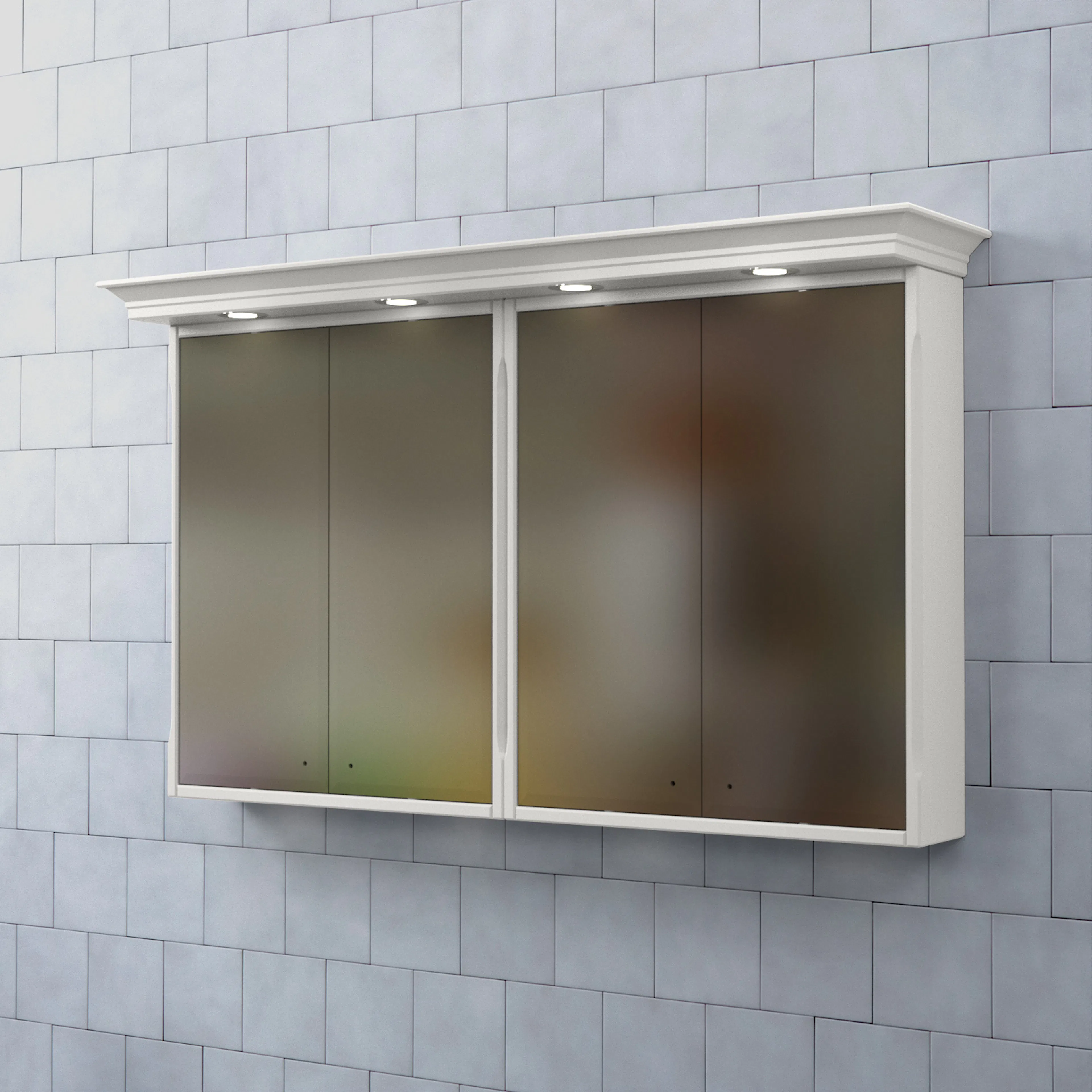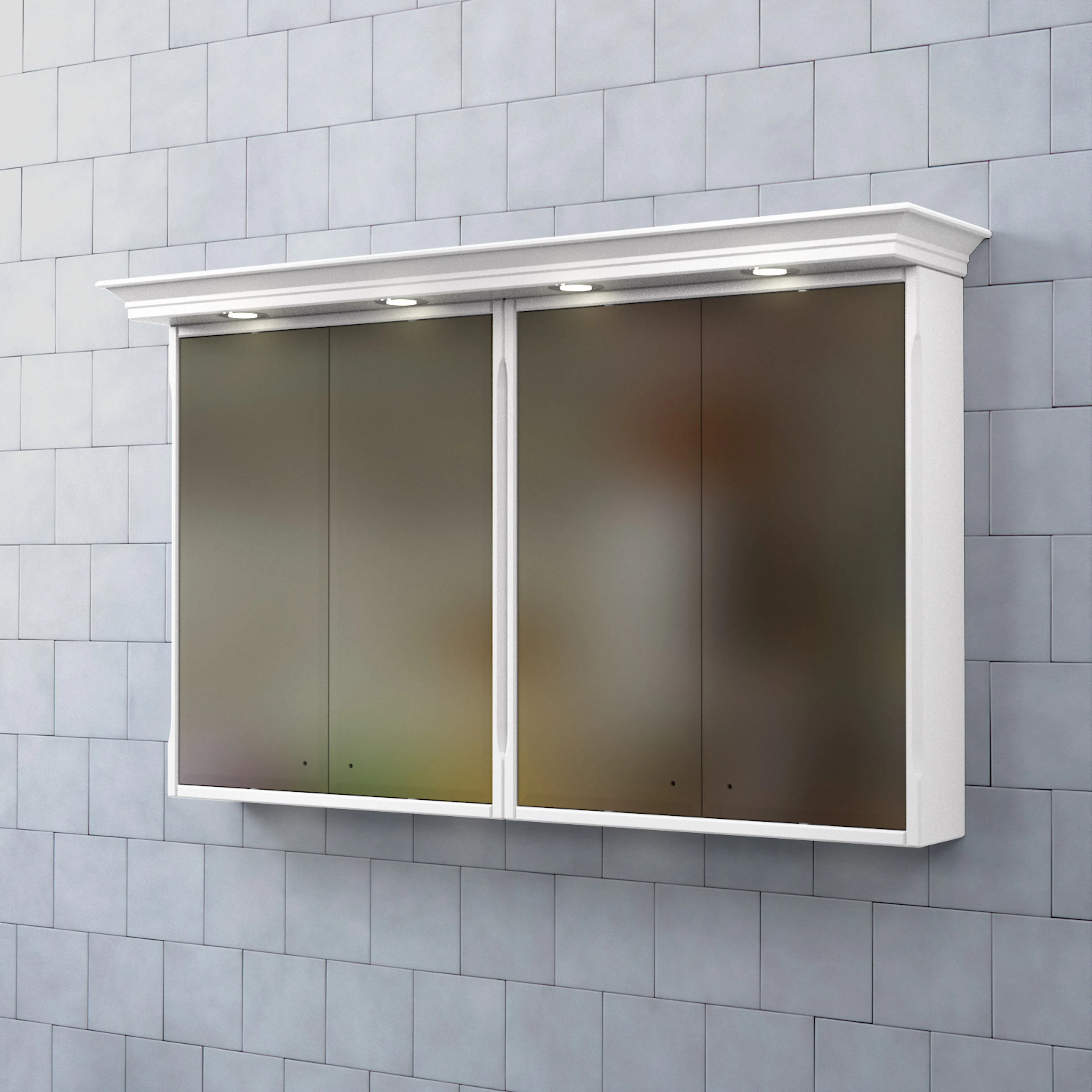 Spegelns stomme är tillverkad av målad MDF med spegelglas. Komplettera spegelskåpet med knoppar och dimmerfunktion till LED-belysningen.