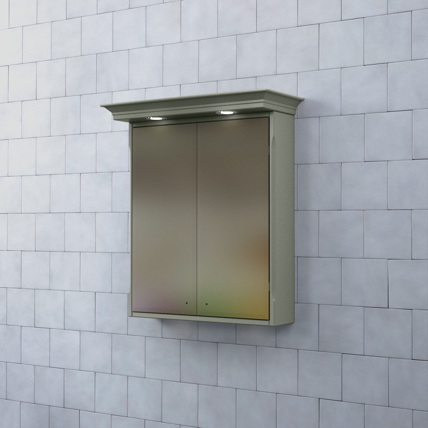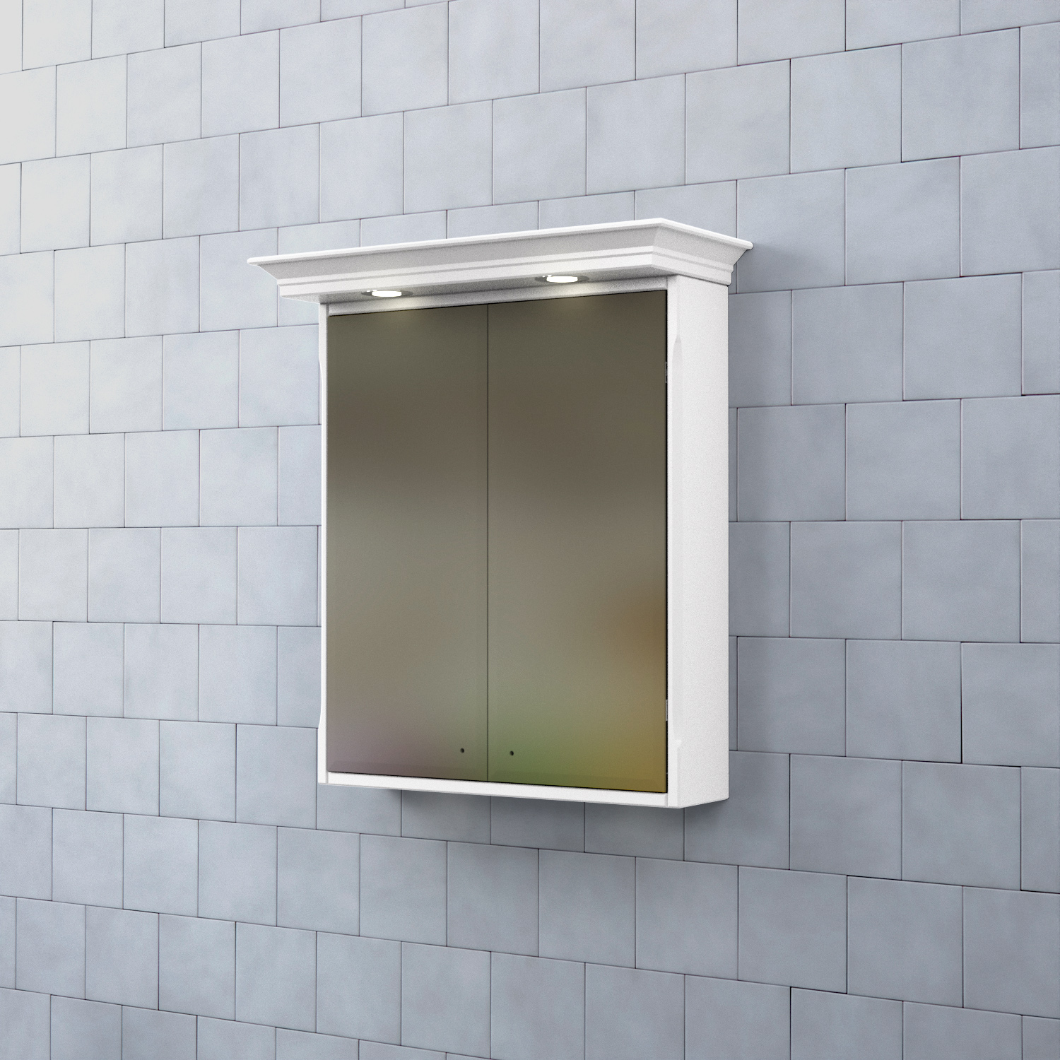 Skåpets stomme är tillverkad av målad MDF med spegelglas. Komplettera spegelskåpet med knoppar och dimmerfunktion till LED-belysningen.