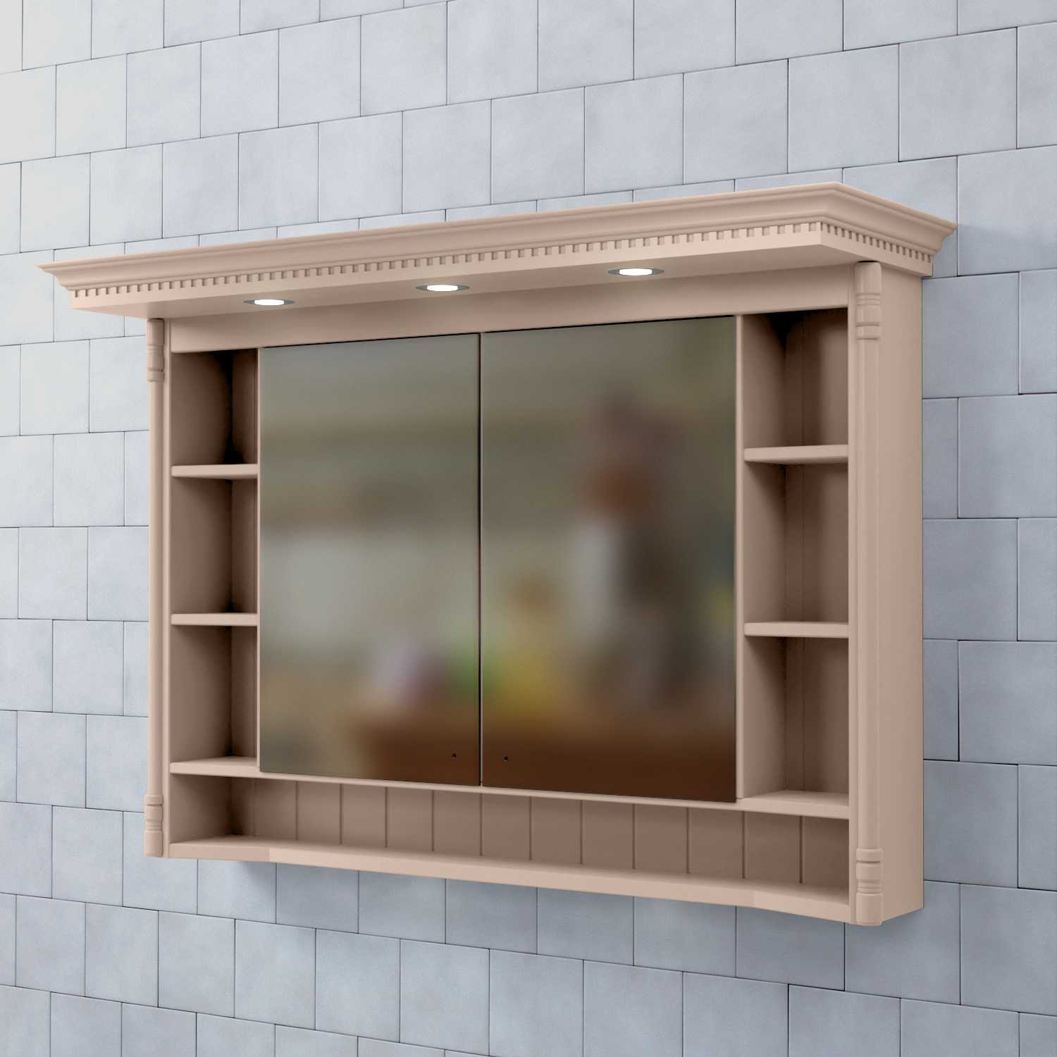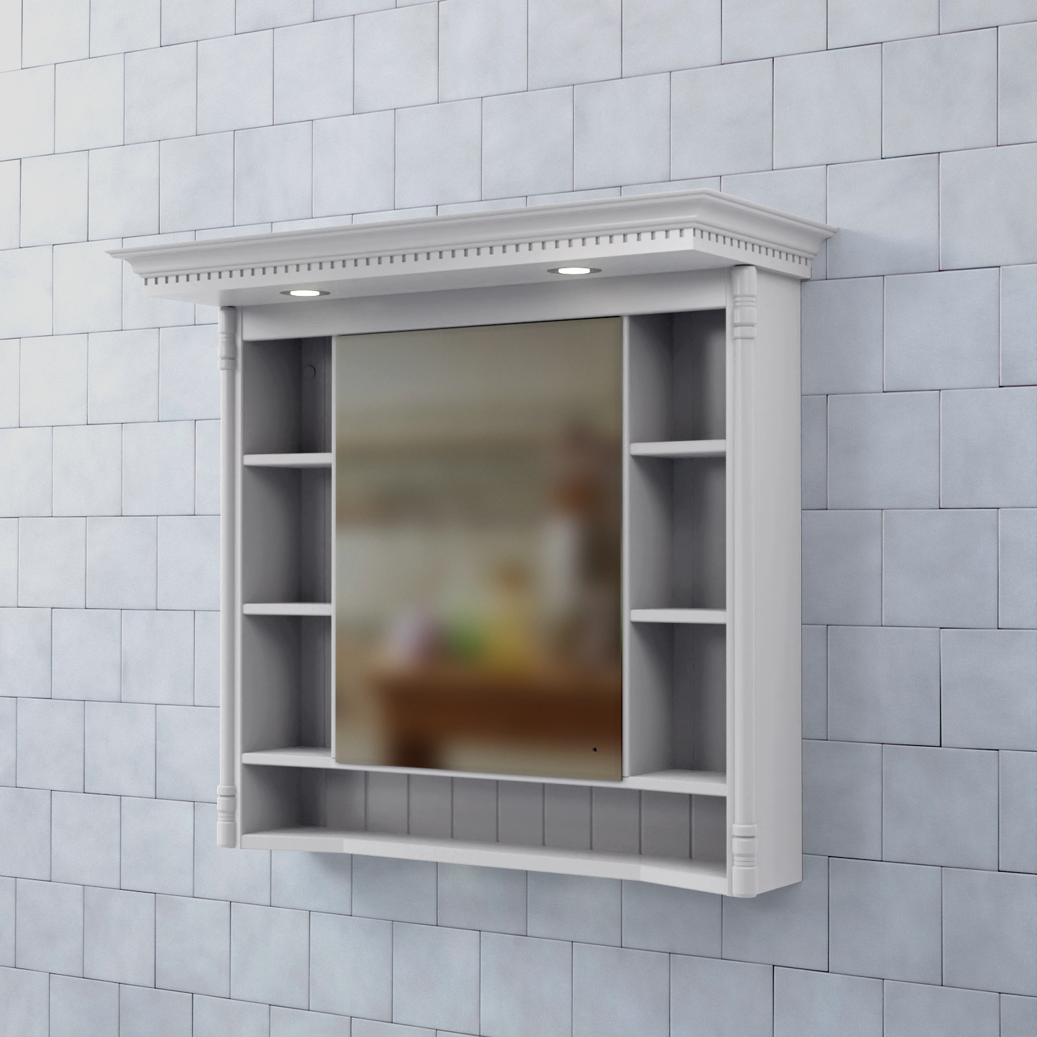 Skåpets stomme är tillverkad av målad MDF med spegelglas. Komplettera spegelskåpet med knoppar och dimmerfunktion till LED-belysningen.