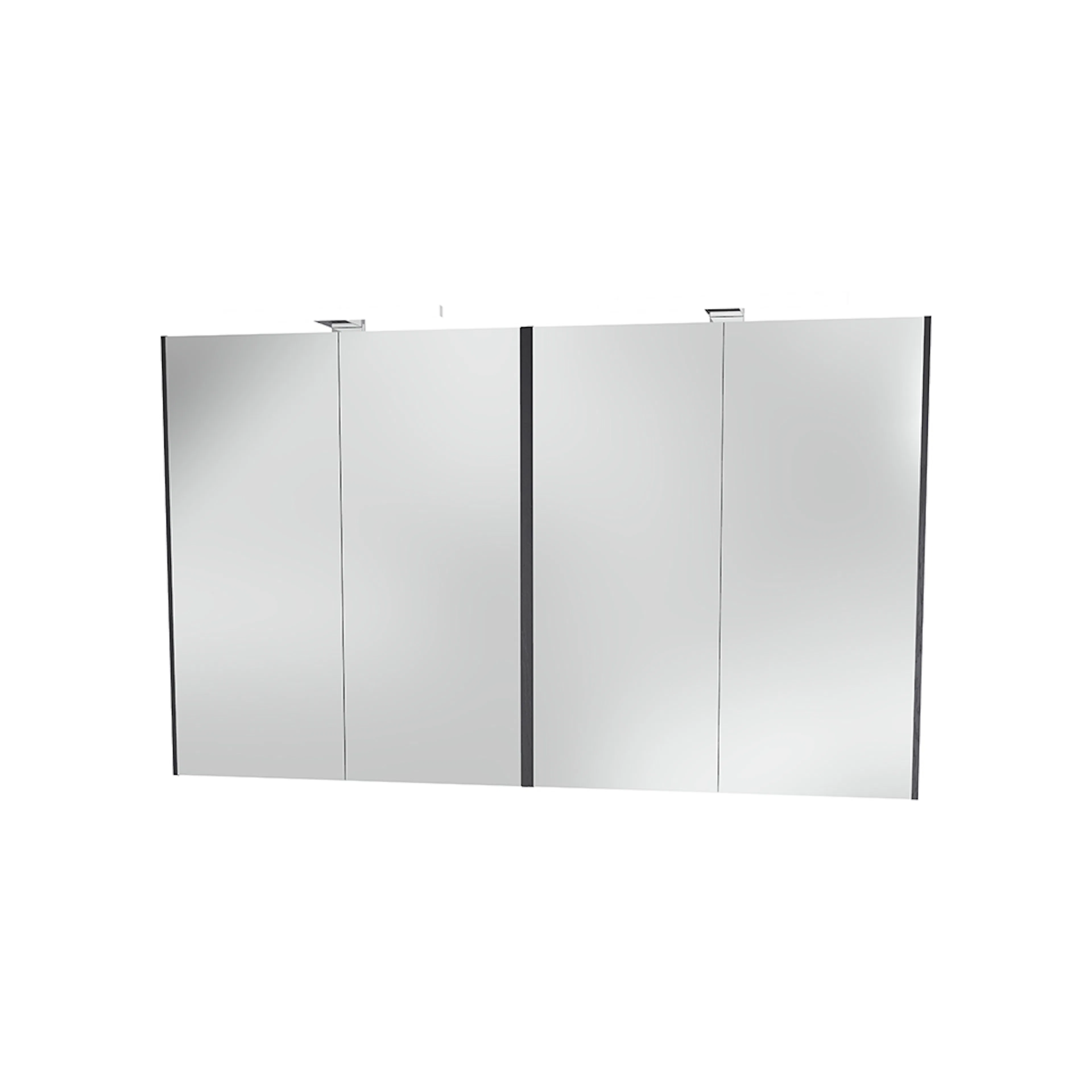 2 x 60 spegelskåp från Miller Badrum med mjukstängande dubbelsidiga spegeldörrar (4 st). Mittdelare av trä för stabilitet och mer flexibel placering av glashyllor. 8 st flyttbara glashyllor ingår. Försedd med upphängningslister för justerbar och snabb montering. Belysning finns som tillval. För att underbelysningen ska fungera måste du också köpa till överbelysning. Möbler levereras färdigmonterade.