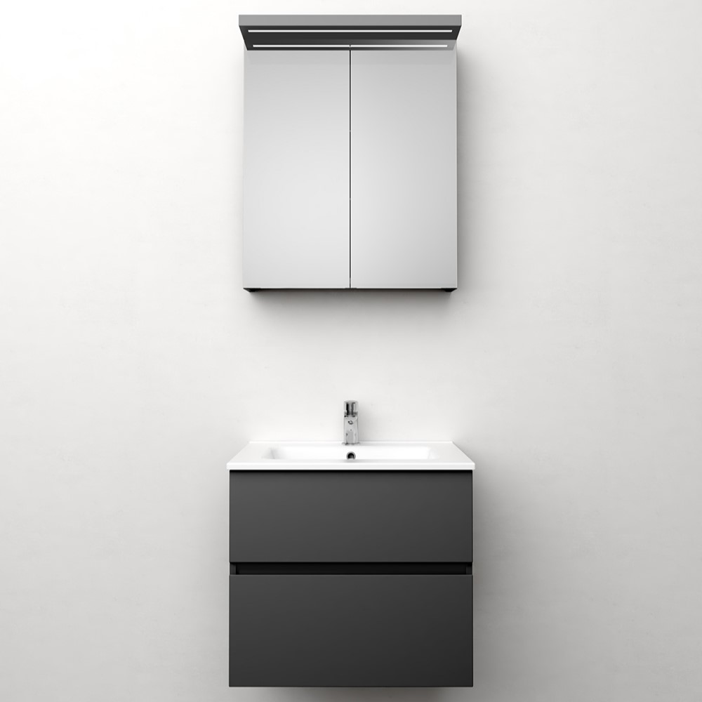 Spegelskåp Westerbergs Samla med funktionell belysning, infälld LED-profil med varmvitt ljus. Välj mellan färgerna vit eller antracit och den bredd du önskar. Mjukstängande, dubbelsidiga spegeldörrar. Eluttag på höger sida och med flyttbara hyllplan i glas med hyllbärare som låser dem säkert på plats. Hel upphängningsskena och justerbara upphängningsbeslag, enkel att installera. Förberett för enkel el-installation. IP44.