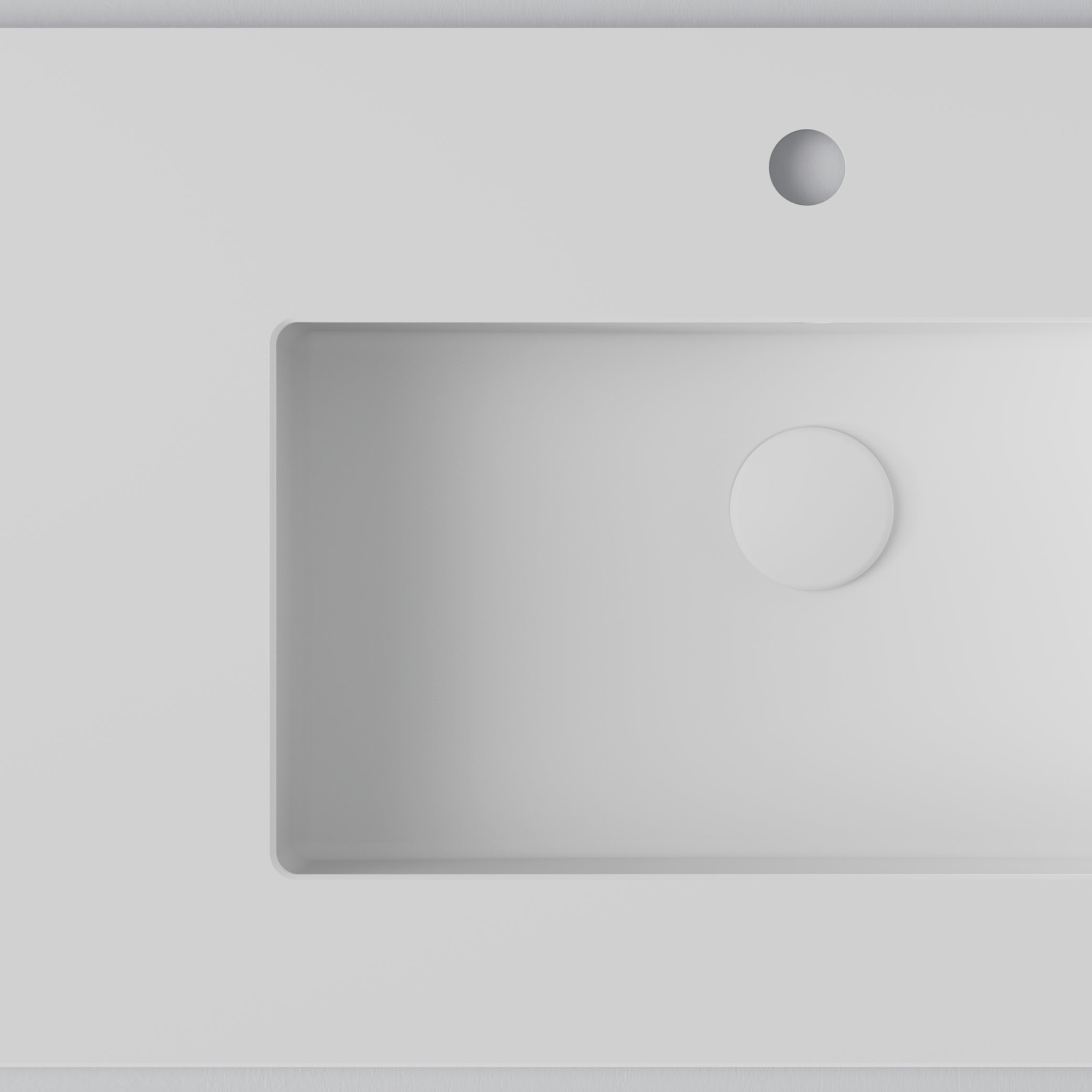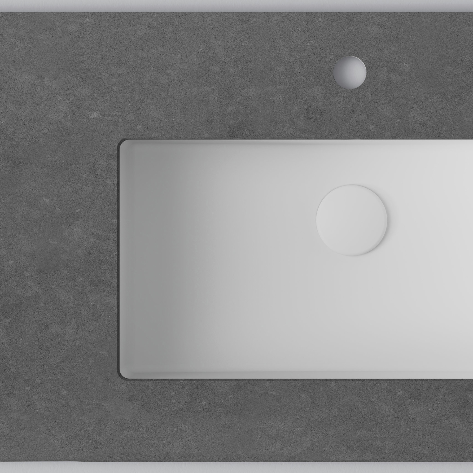 Bänkskiva INR Wave med dubbelt underlimmat tvättställ är en tålig bänkskiva i mineralkomposit med matt finish – ett material som både känns varmt och ger badrummet en modern karaktär. Wave finns i fem kulörer: Raw Concrete, Raven, Chalk, Umber och Fudge. Tillsammans med det underlimmade tvättstället i antingen mattvitt eller mattsvart porslin skapas en harmonisk och stilren helhet i möbelserierna Core och Terra.