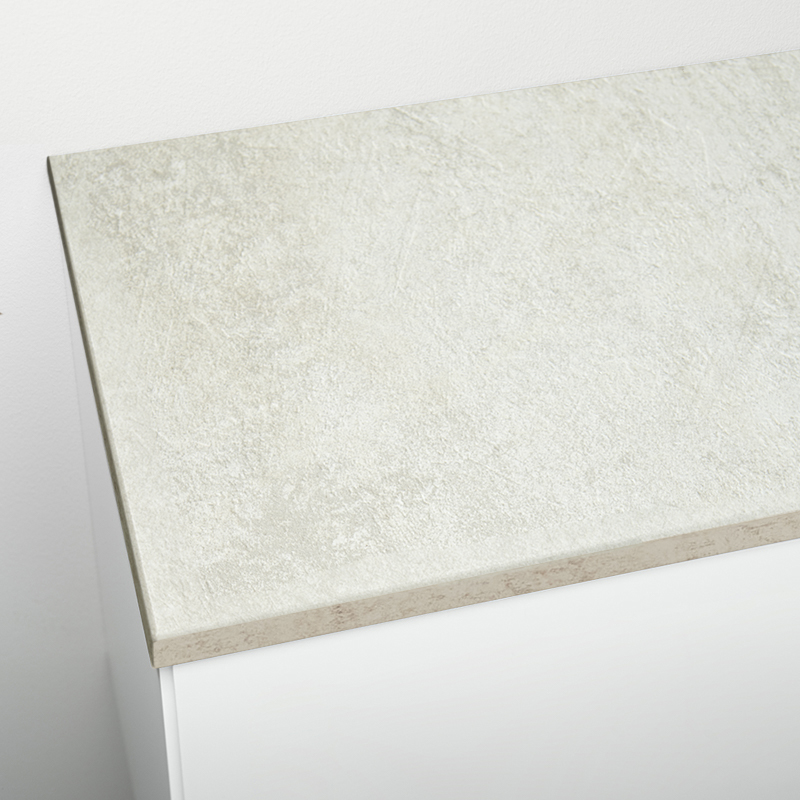 Fukttrög bänkskiva av laminat. Bänkskivan har ett tåligt ytskikt och en kärna i MDF eller spånskiva.