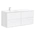 Tvättställsskåp Alterna Gabriella levereras med Ariella tvättställ i porslin. Underskåpen har mjukstängande lådor. Möblerna är mer tåliga mot fukt då de tillverkas i en fukttrög MDF. Underskåpen levereras färdigmonterade. Du kan välja om du vill ha din ho placerad åt vänster eller höger.
