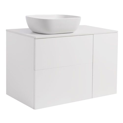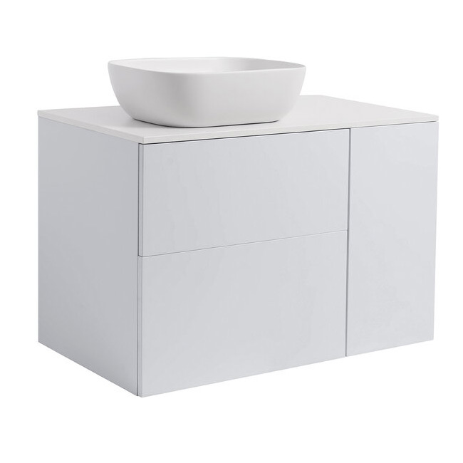 Tvättställsskåp Alterna Isella med bänkskiva i kvartskomposit och rektangulärt tvättställ. Skåpet levereras med en integrerad tvättkorg i 30-skåpet. Välj om du vill ha ett eller två stycken 30-skåp med tvättkorg. Bänkskivan är gjord av kvartskomposit och tvättstället i porslin, 455x325x135 mm. Underskåpen har mjukstängande lådor. Handtag och blandare beställs separat.