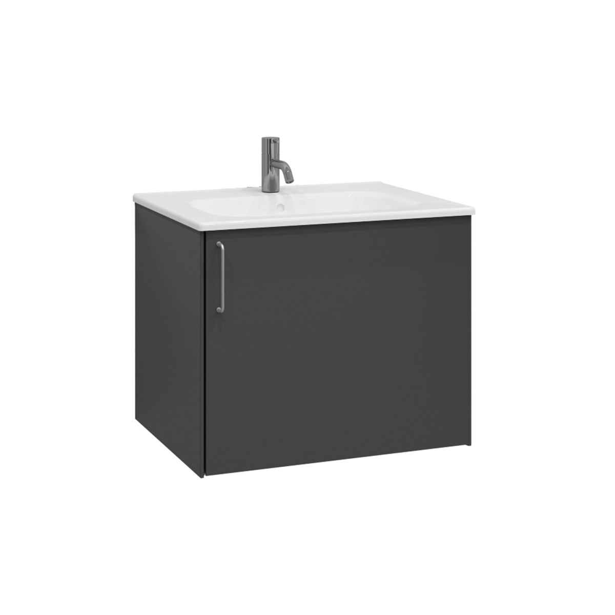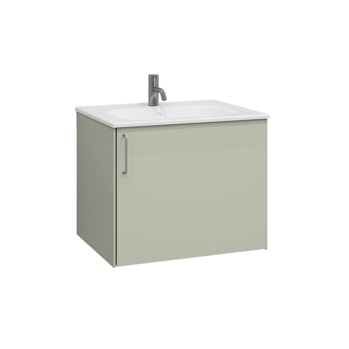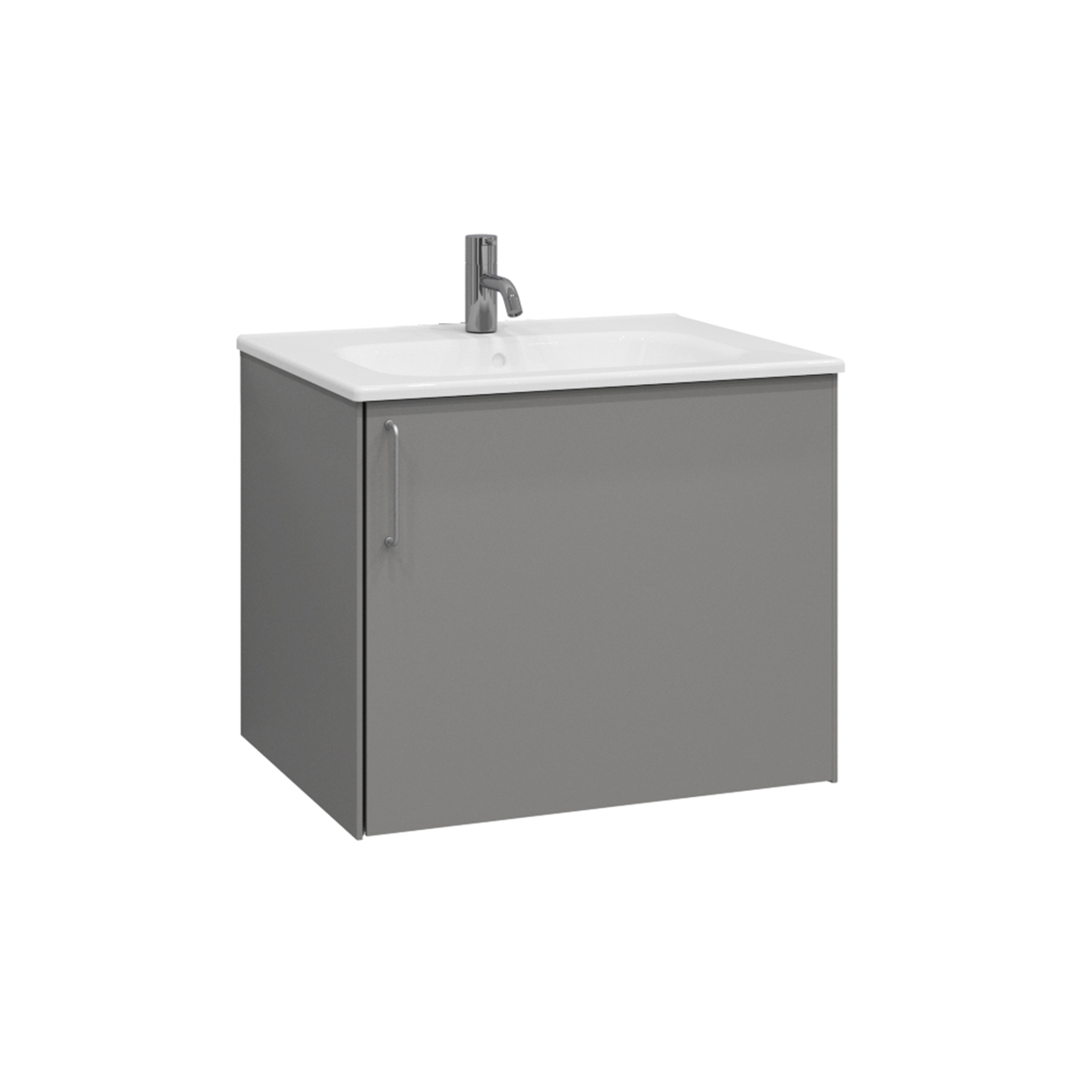 Tvättställsskåp Ballingslöv KA60 Lessmore med en mjukstängande lucka och en invändig hylla. Möbeln kan monteras vägghängd eller med tunna benstativ i stål som tillval. Insidan är försedd med ett praktiskt hyllplan och kan utrustas med en smart förvaring med en plåthylla på luckans insida. Tvättstället Thin i porslin rekommenderas.