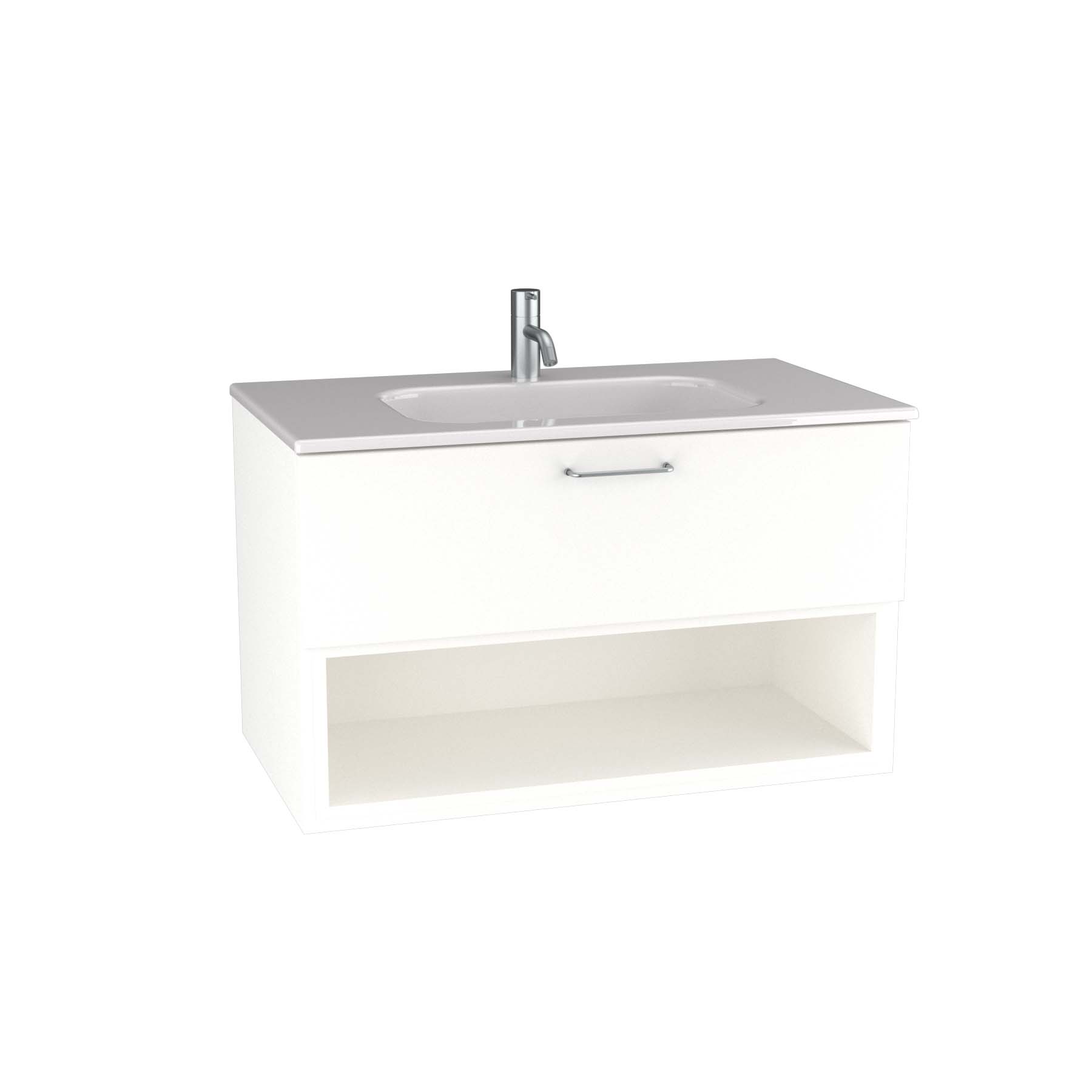 Tvättställsskåp Ballingslöv KO80 Bright är ett stilrent tvättställsskåp med en välplanerad låda samt en öppen hylla nedtill.