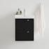 Fronterna har borrmarkeringar på insidan som underlättar monteringen av handtagen med mått CC160 som medföljer. Tvättstället är i porslin och har överfyllnadsskydd.