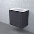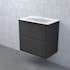 Stommen är tillverkad av fukttrögt skivmaterial och skåpet levereras färdigmonterat och transportförpackat från fabrik. Komplettera din möbel med tvättställ, blandare, handtag, eluttag, extra lådindelare och ben. Du kan välja mellan olika heltäckande tvättställ, ovanpåliggande tvättställ med medföljande bänkskiva eller en bänkskiva med ett underlimmat porslinstvättställ, allt efter eget tycke och smak.