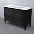 Tvättställsskåp Saga Enkel 1200 från Björbo Badrum är ett elegant tvättställsskåp som levereras utan tvättställ, handtag och blandare. Skåpet är gjort av massivt lövträd och har djupa och mycket stabila fullutdragslådor i svartbetsat trä med mjukstängning och självindrag. Det har ben som är justerbara på höjden och ger möbeln ett klassiskt uttryck som förhöjer stilen på möbeln, observera att skåpet alltid ska fästas i vägg. Detta tvättställsskåp levereras med vattenlås, lådindelare och lådmattor.