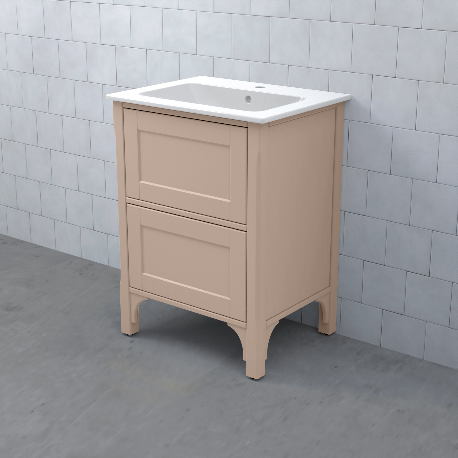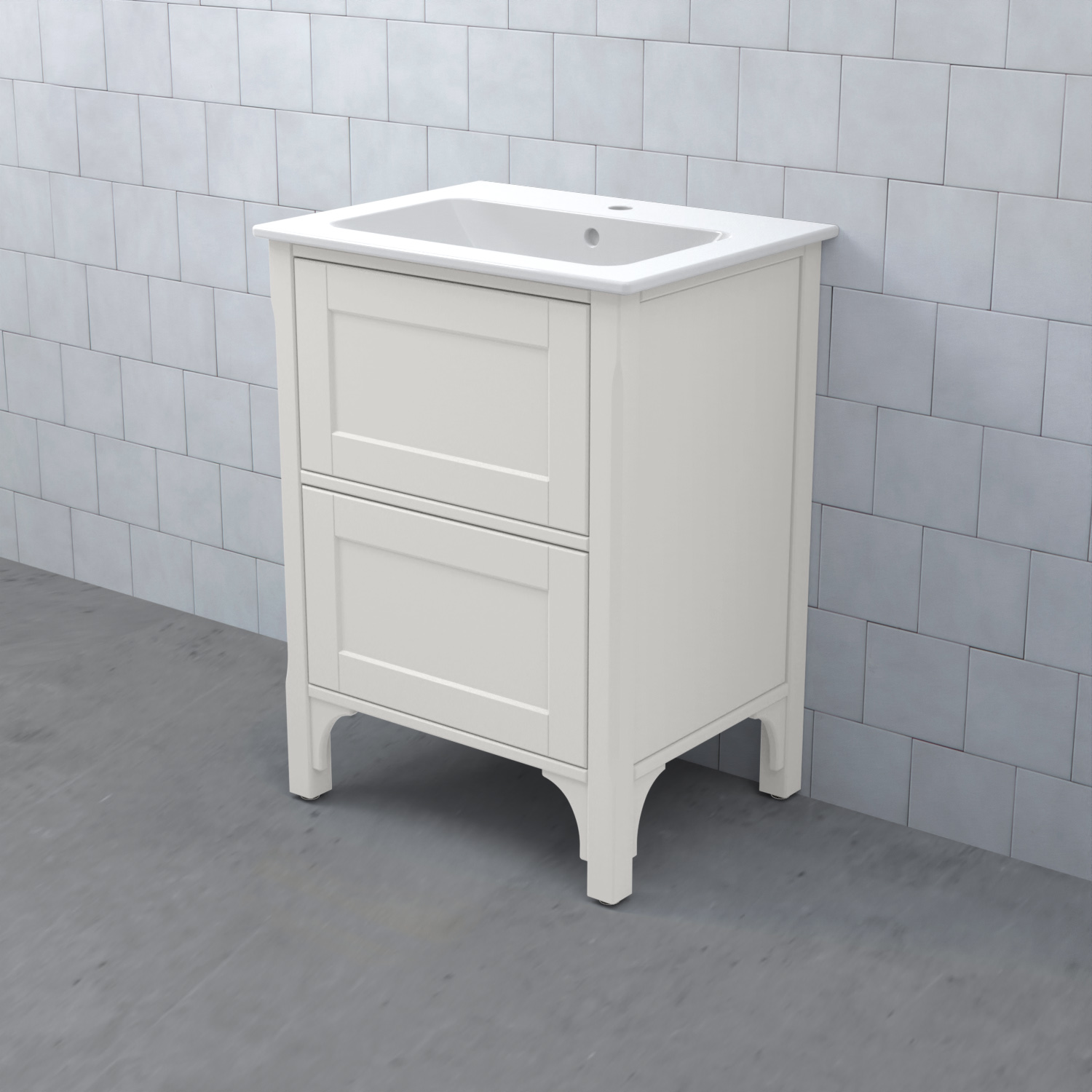 Komplettera ditt tvättställsskåp med ett tvättställ, blandare och handtag. Det finns flera olika tvättställ att välja på: heltäckande porslinstvättställ, bänkskiva med underlimmat porslinstvättställ eller heltäckande granittvättställ med eller utan integrerad LED-belysning.