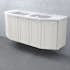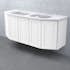Tvättställsskåp Valhall 150 Luckor Dubbel från Björbo Badrum är ett elegant tvättställsskåp anpassat för dubbla tvättställ med sekelskiftesdetaljer som levereras utan tvättställ, handtag och blandare. Detta badrumsskåp har luckor gjorda av målad, präglad MDF och leverer med vattenlås, lådindelare och lådmattor. Stommen är gjord av målad MDF.