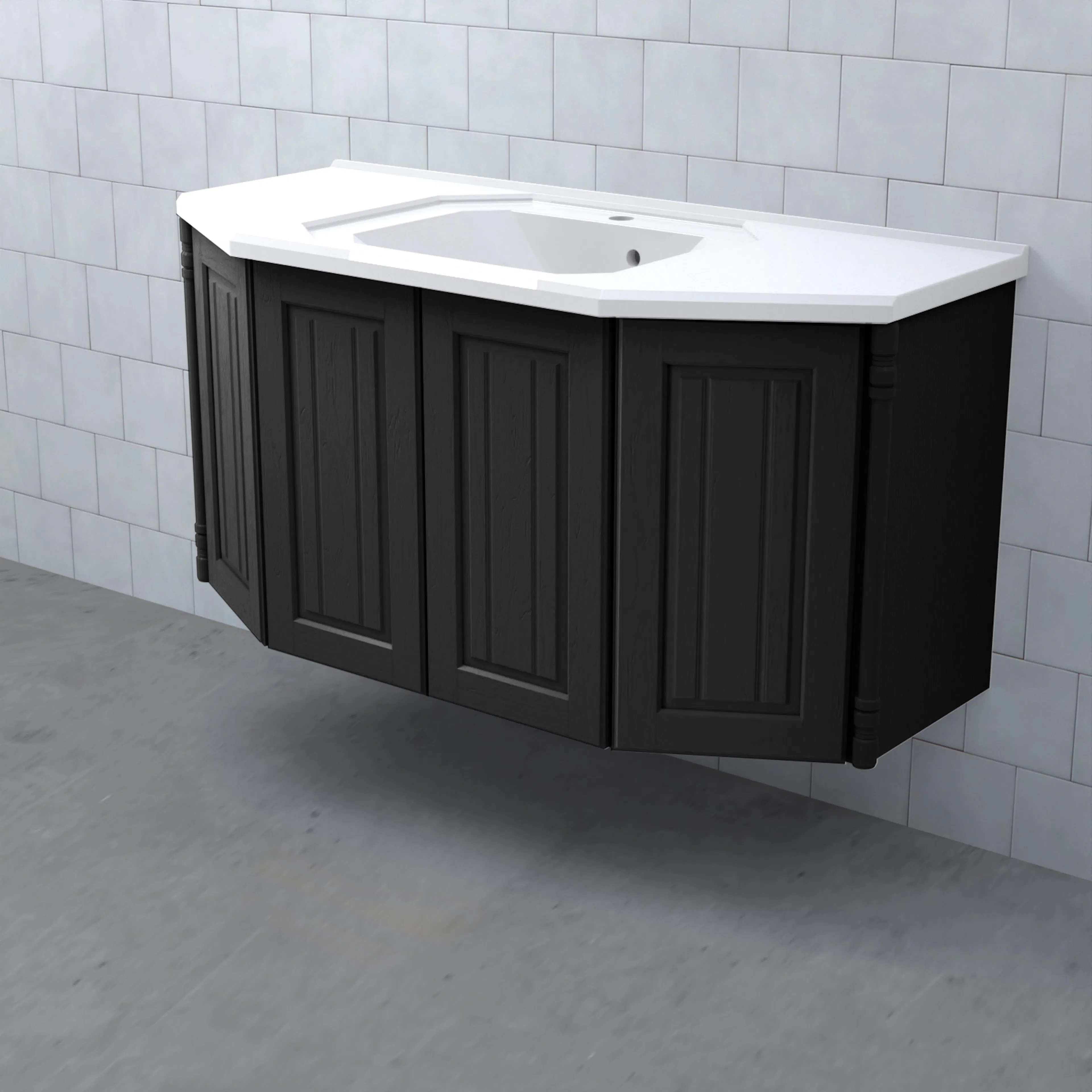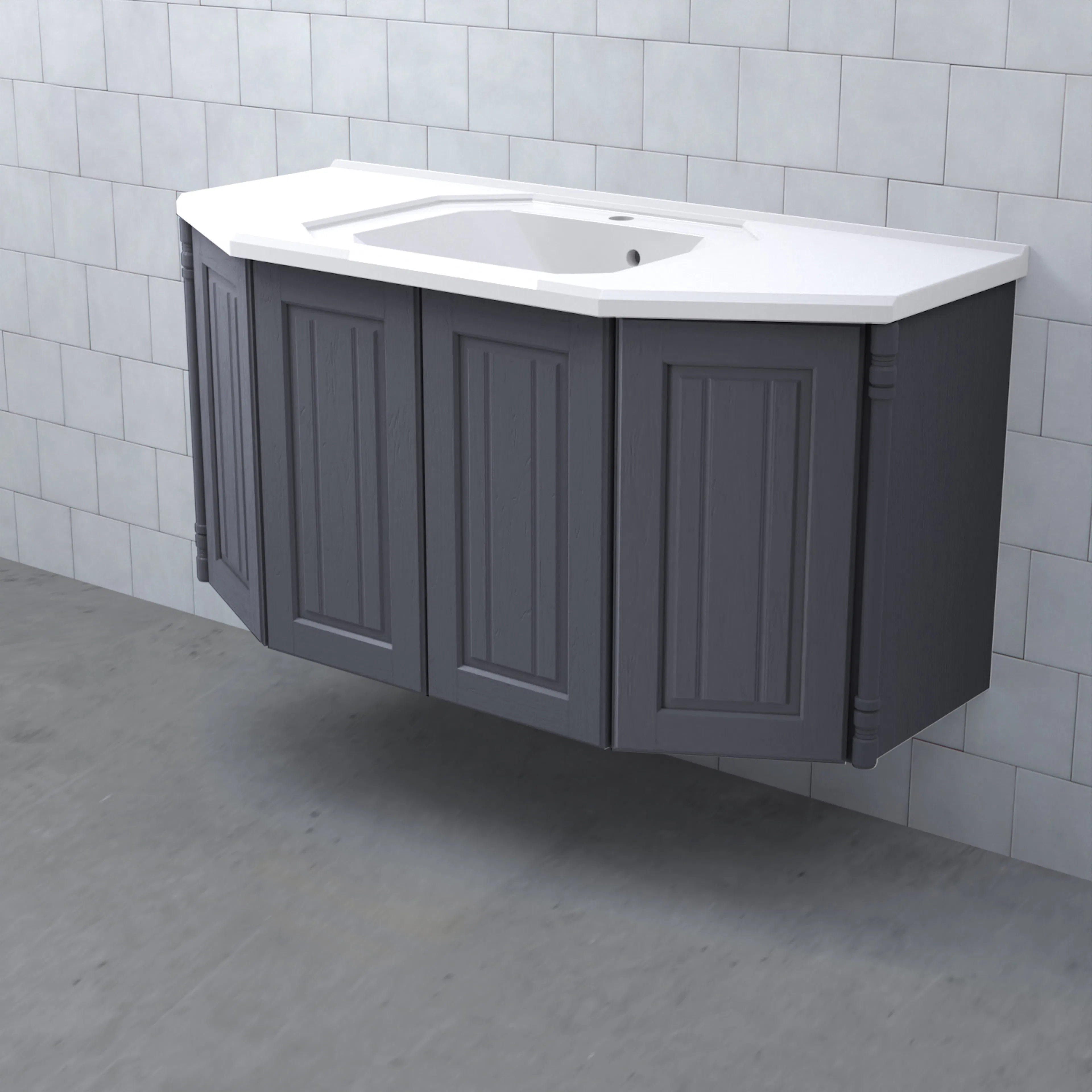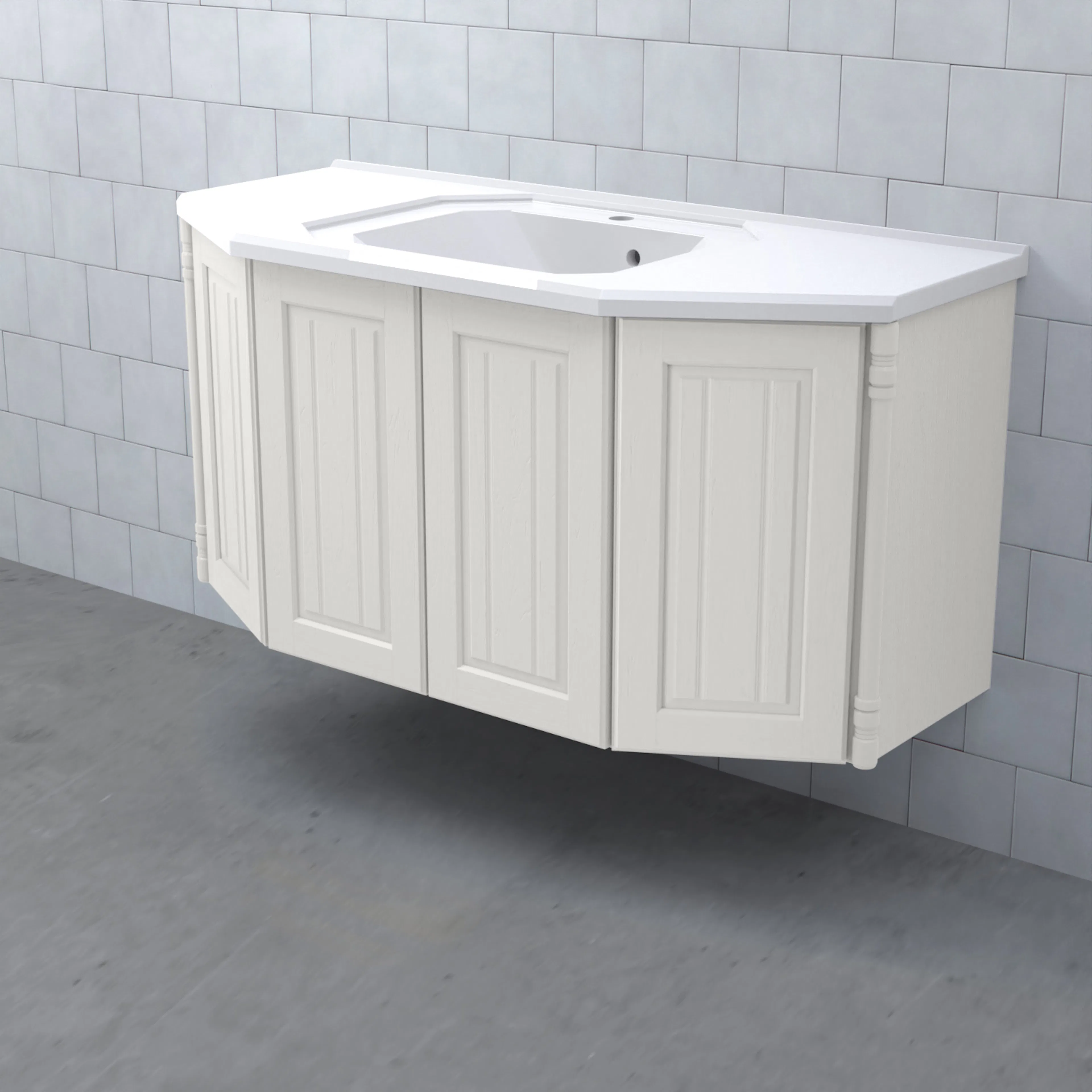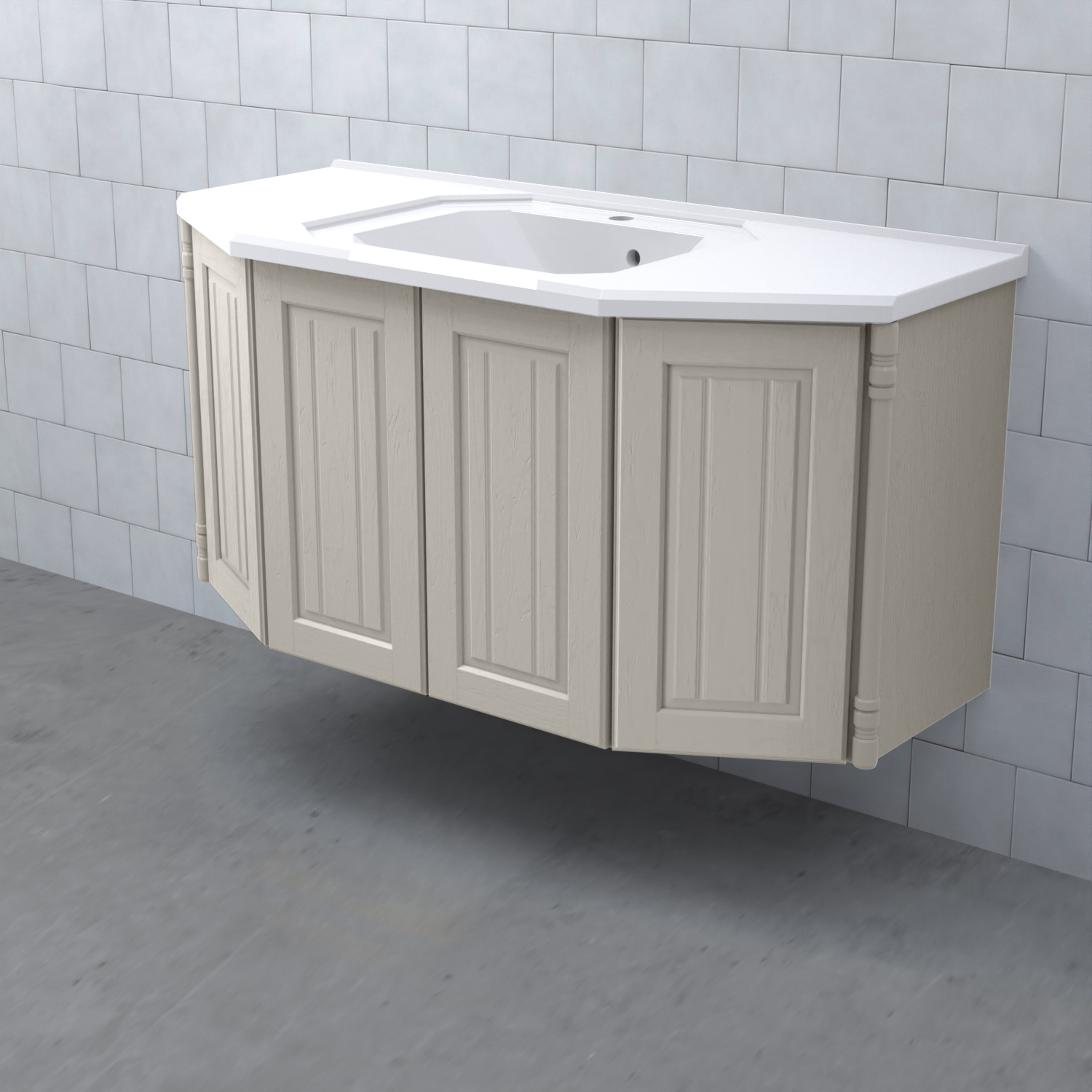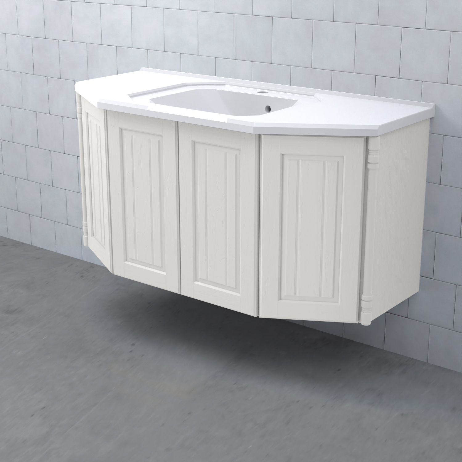 Tvättställsskåp Valhall Luckor från Björbo Badrum är ett elegant tvättställsskåp med sekelskiftesdetaljer som levereras utan tvättställ, handtag och blandare. Detta badrumsskåp har luckor gjorda av målad, präglad MDF och leverer med vattenlås, lådindelare och lådmattor. Stommen är gjord av målad MDF.