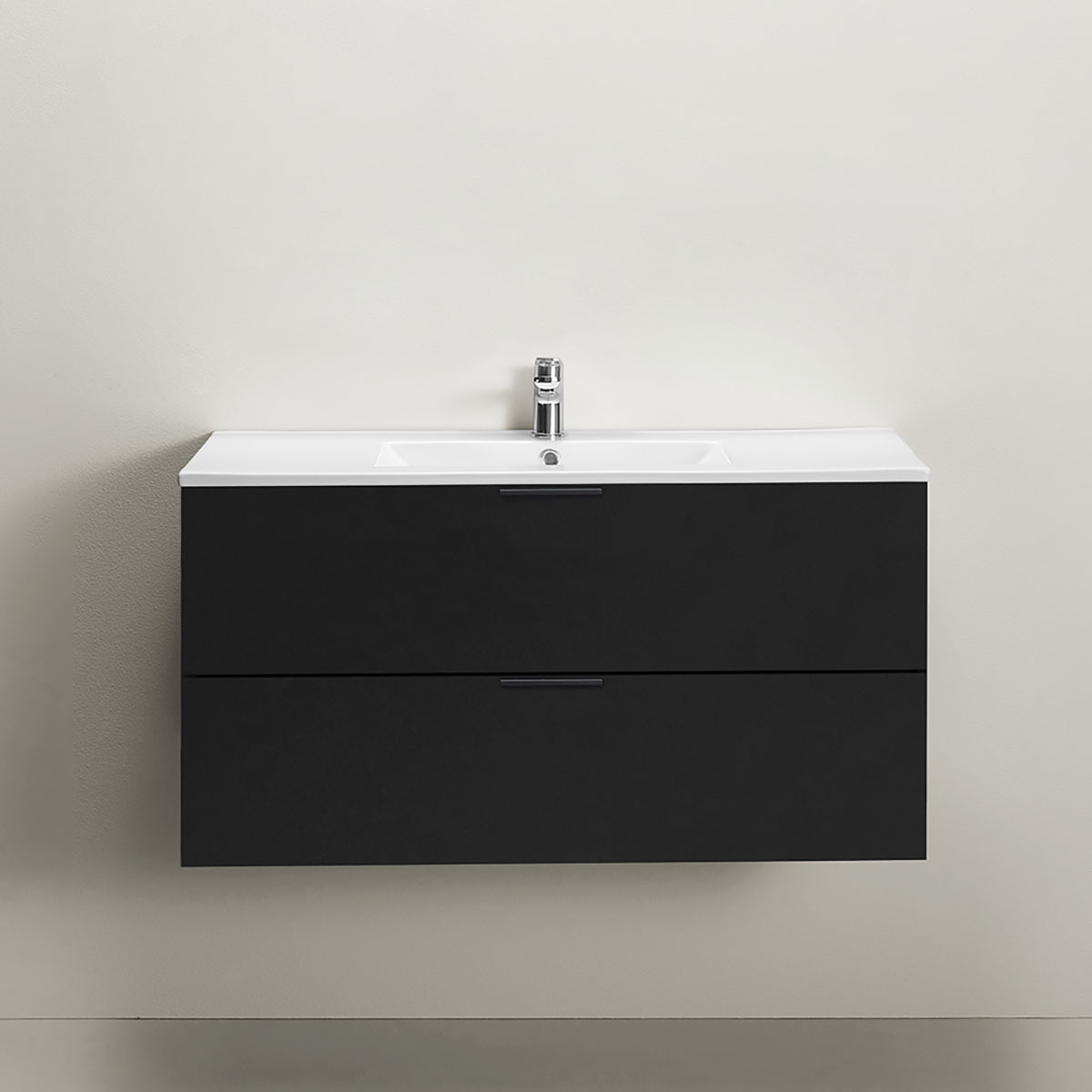 Hafa Go tvättställsskåp med porslinstvättställ är praktiska och stilrena badrumsmöbler med släta fronter och möjlighet för dig att sätta din stil genom att komplettera med något av våra handtag. Två mjukstängande lådor med fullutdrag ger bra överblick över innehållet.