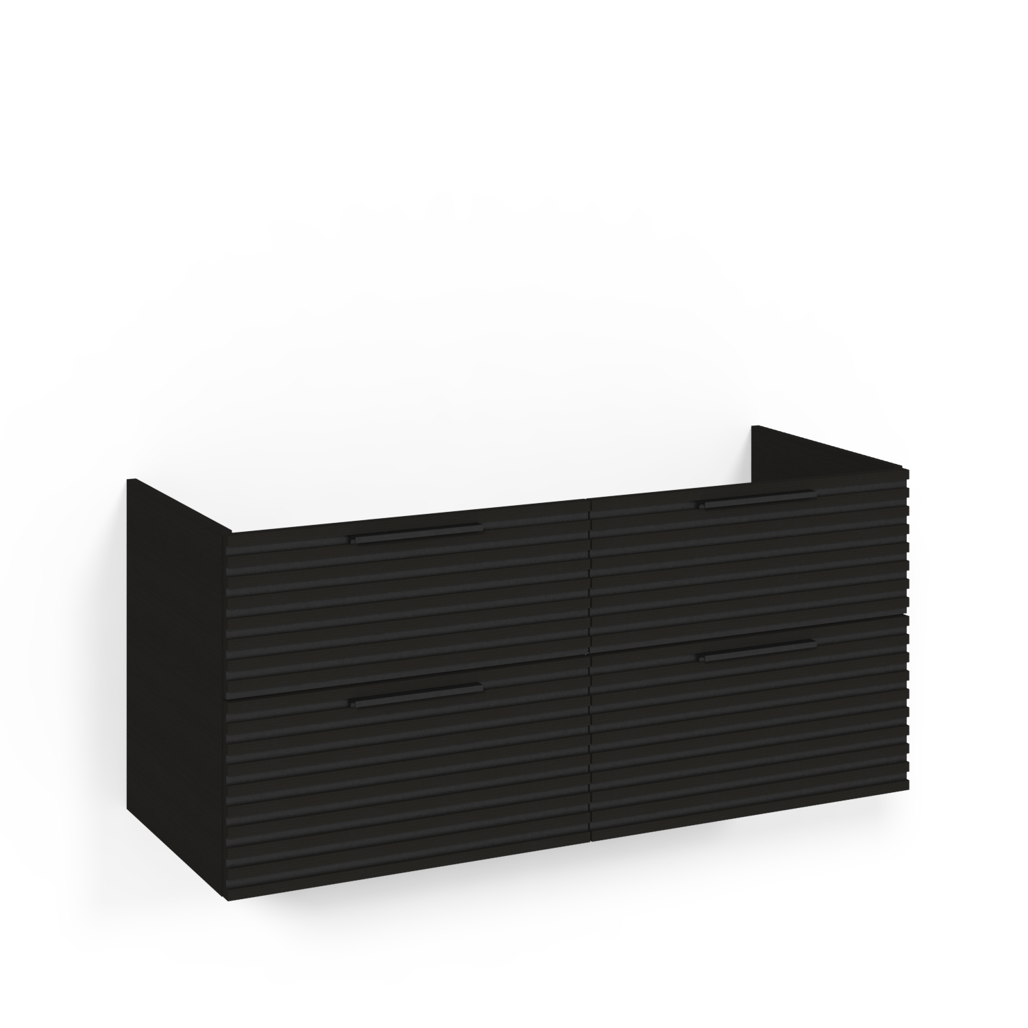 Tvättställsskåp Macro Design Crown Stripe är en svensktillverkad möbel med massiva eklister infällda i en genomfärgad svart MDF skiva. Kantlistad och förseglad yta med en vitpigmenterad klarlack och integrerat svart handtag.
