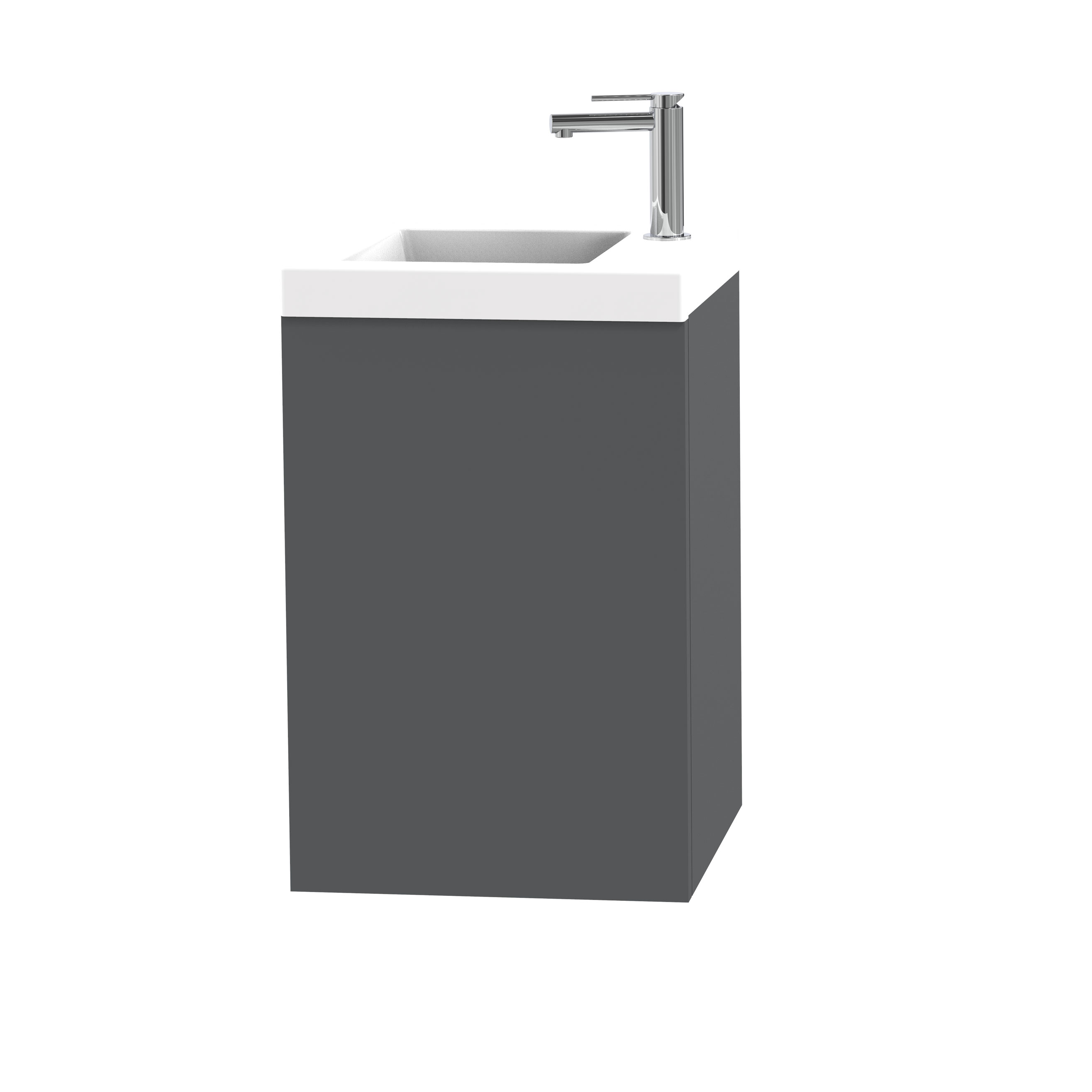 Tvättställsskåp Miller Badrum City 40 för Bänkskiva är ett stilrent tvättställsskåp med lucka och silkeslen matt yta. Den matta ytan reflekterar minimalt med ljus och skapar en sober effekt i ditt badrum. Nanotekniken som används i materialet är den mest reptåliga yta Miller Badrum kan erbjuda och detta medför ökad slitstyrka och längre hållbarhet. Det innovativa materialet i ytan motverkar även fingeravtryck och är tack vare sin exceptionella täthet smuts- och vattenavvisande.