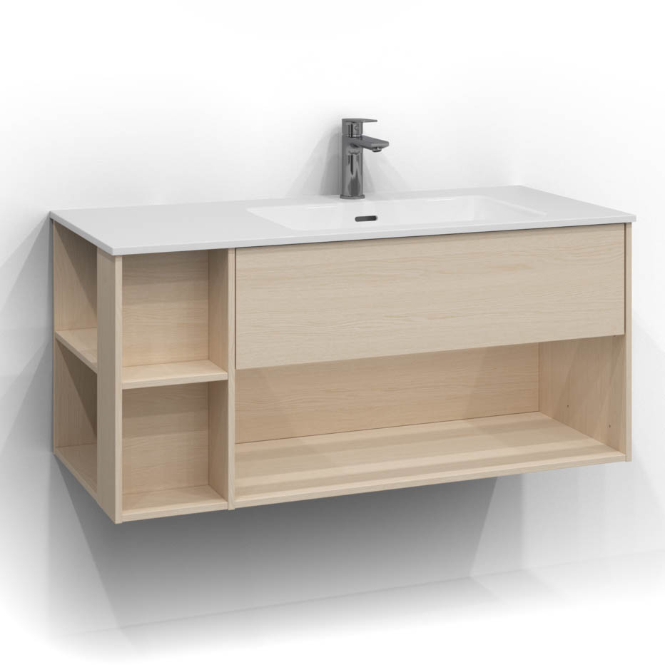 Under tillval kan du välja att köpa till ett traditionellt eller ovanpåliggande tvättställ samt bänkskiva. Du kan även välja till den tvättställsblandare som passar i ditt badrum. Detta ingår inte.