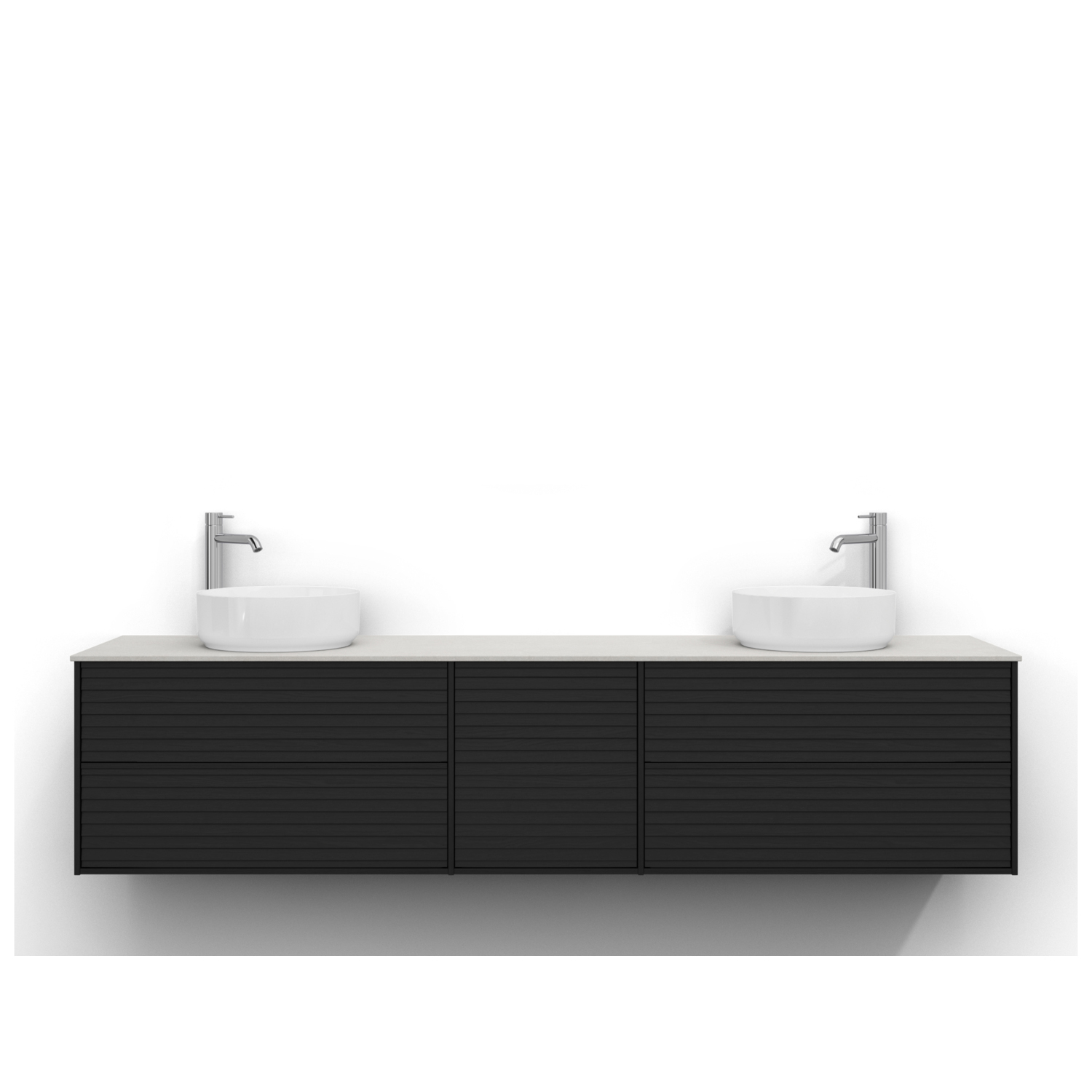 Tvättställsskåp Svedbergs Epos 200x45 har 2+1+2 lådor med mjukstängande lådskena som gör att hela lådans längd kan användas. Epos 200x45 är möbeln för det stora badrummet där kompromisser inte hör hemma.