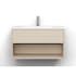 Den något bredare möbeln ger extra avställningsyta med bibehållen känsla av lätthet. Det integrerade tvättstället skapar ett lugnt och enhetligt intryck – perfekt för ett modernt hem.