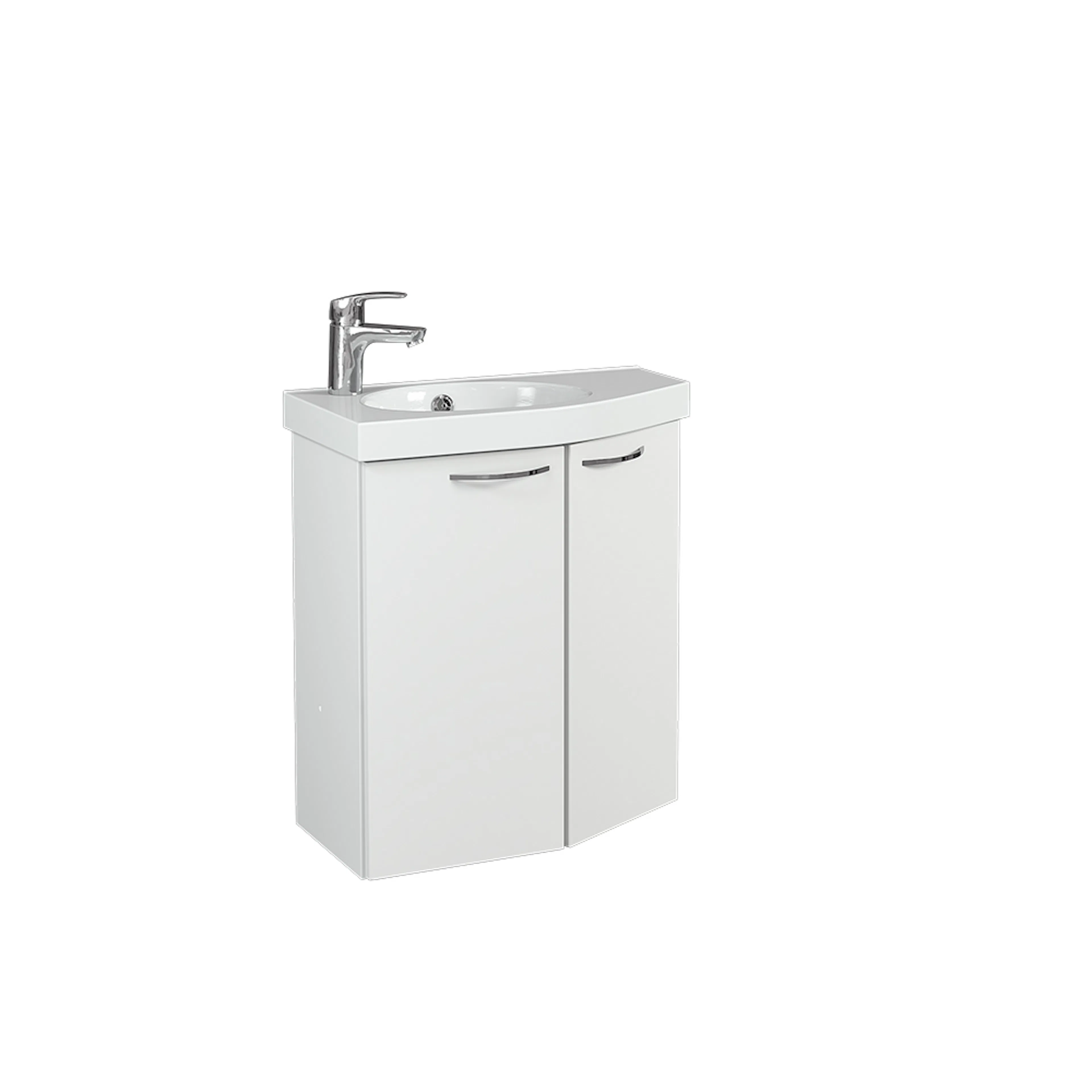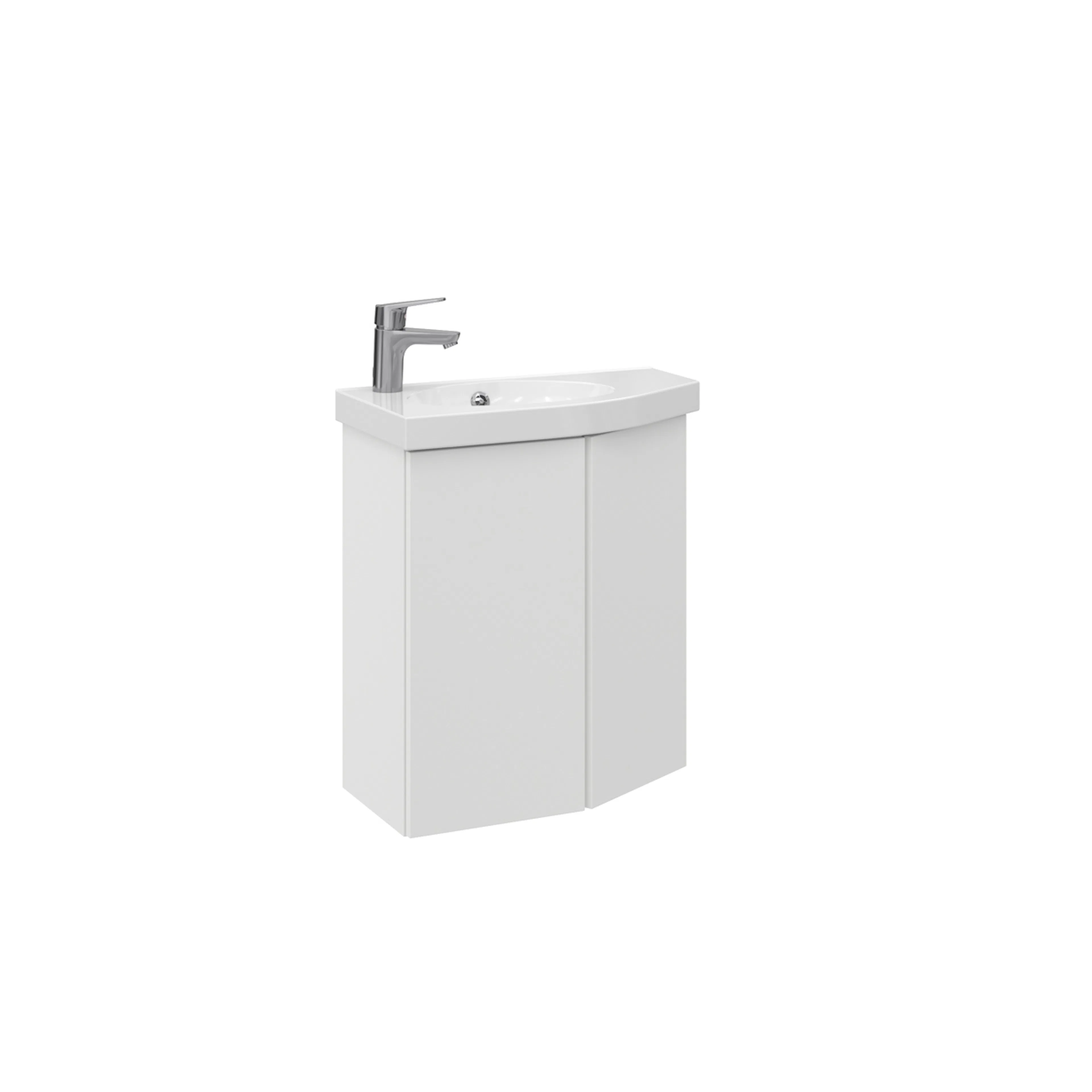 Tvättställsskåp TemalMondo med Tvättställ och 2 LuckorAvsmalning vänster, 57,5 x 30 x 64 cm, Vit Matt