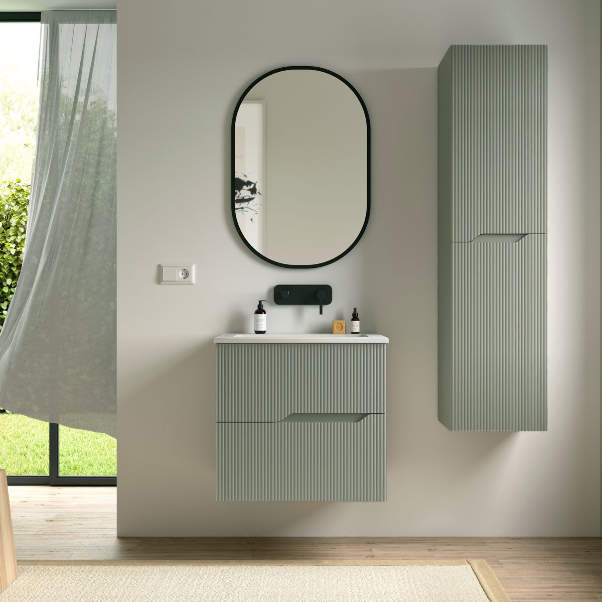Designen på Tenfors Bambu kompletteras av ett urval av fyra olika matta ytor: Vit, Salvia, Mullvad och Ek. Den matta ytan ger ett stilrent och lugnande uttryck samtidigt som den är lätt att rengöra och underhålla. Färgerna är noggrant utvalda för att passa olika inredningsstilar – från det minimalistiska och moderna till det mer naturinspirerade och jordnära.