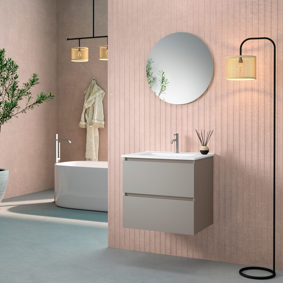 Möblerna i Viken-serien finns i olika färger. Den matta finishen ger ett sofistikerat och modernt uttryck samtidigt som ytan är lätt att rengöra och underhålla. Färgerna är noggrant utvalda för att harmoniera med olika badrumsstilar och färgscheman, vilket gör det enkelt att integrera möblerna i din inredning.