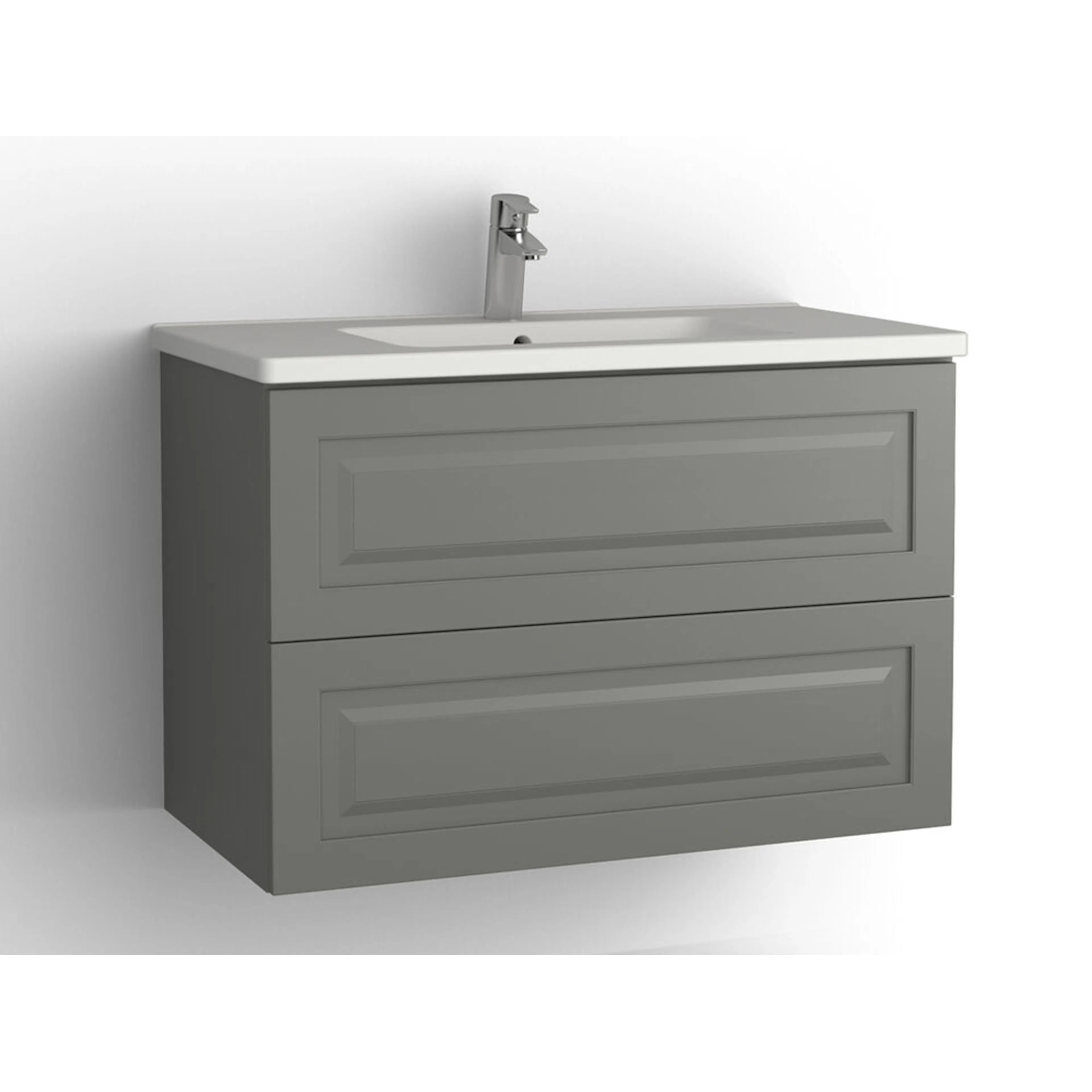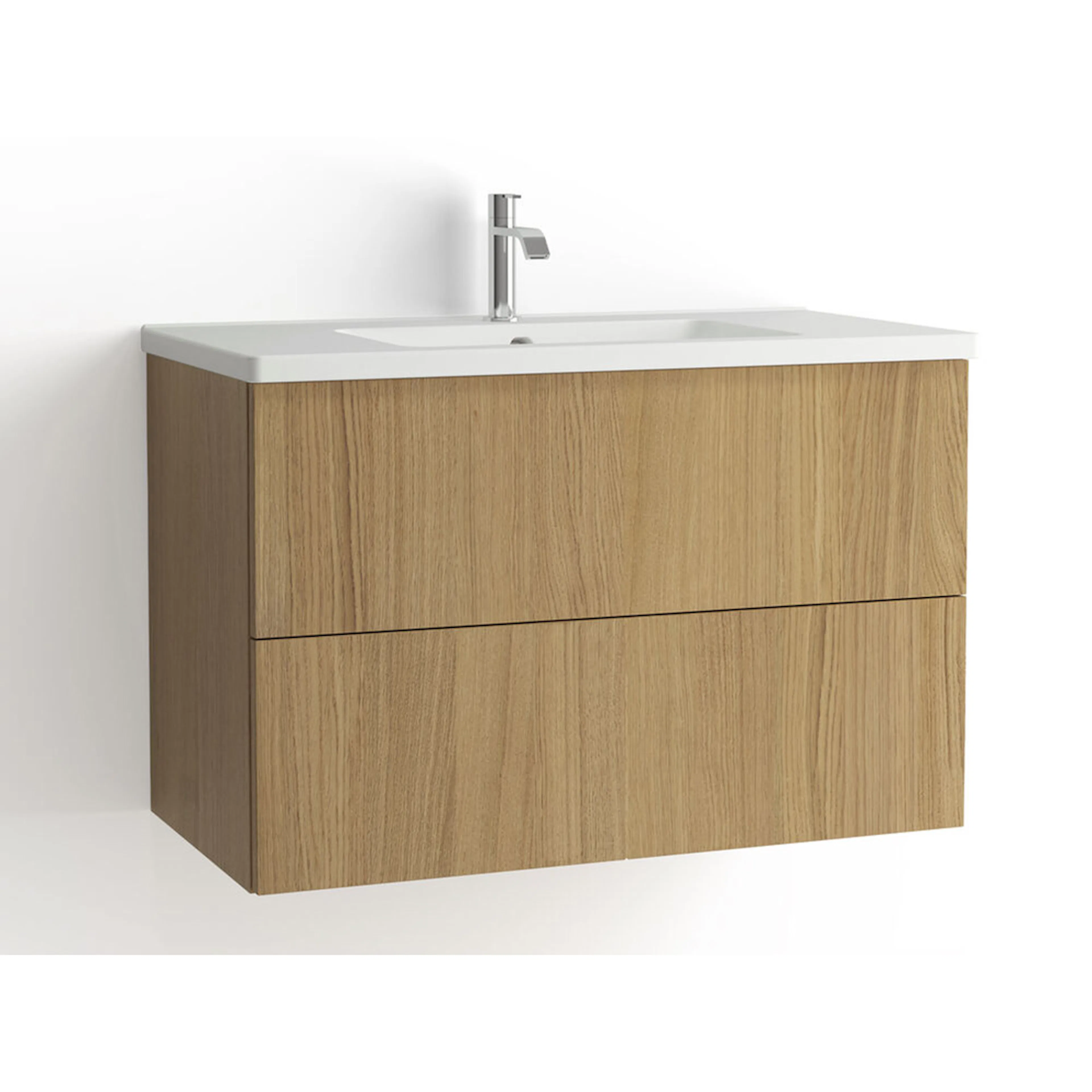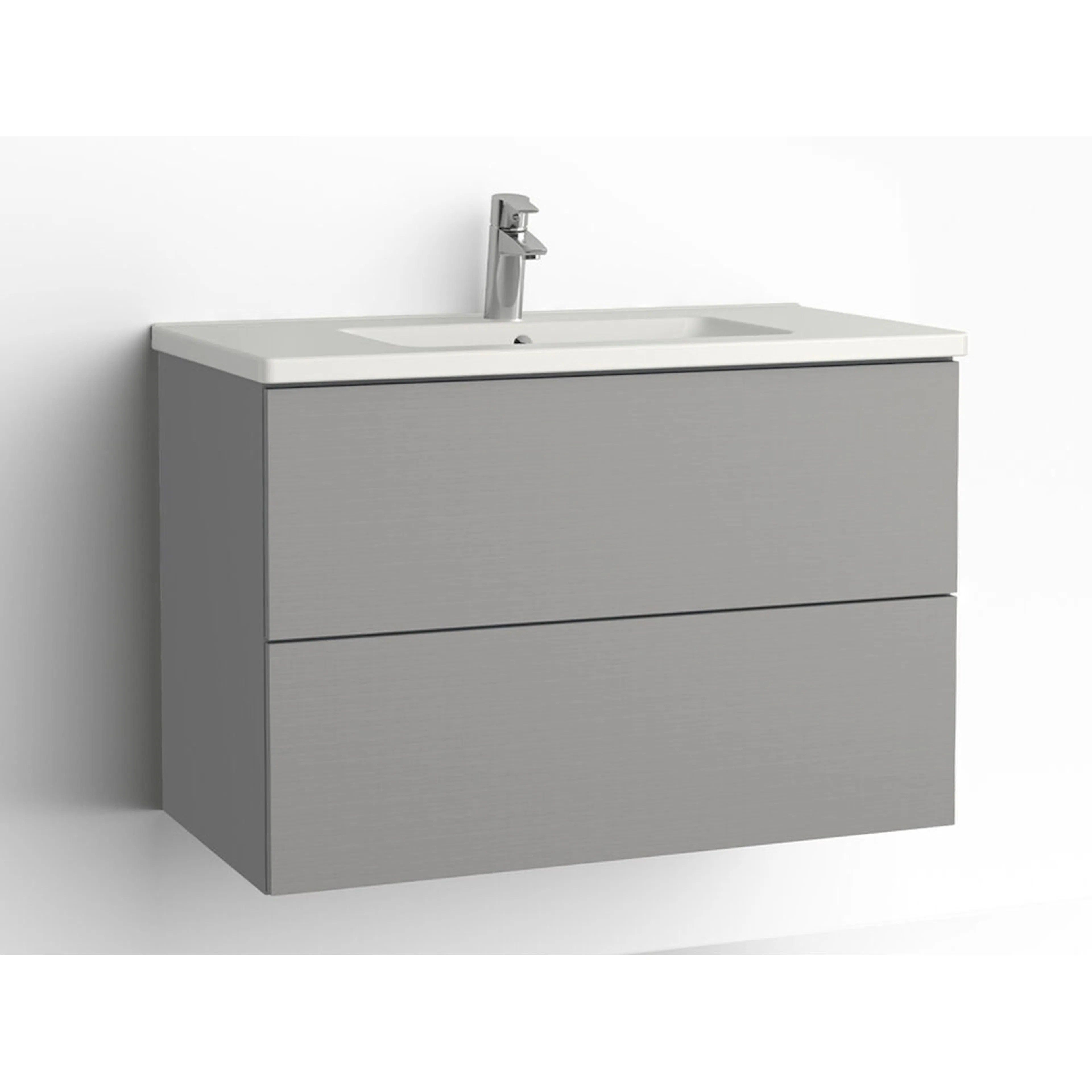 Välj med eller utan pushfunktion samt med eller utan dubbelt 230V uttag i nedre lådan. Komplettera med tvättställ, handtag och tvättställsblandare. Du väljer antingen tvättstället Free i porslin eller tvättstället Found med Evermite-yta.