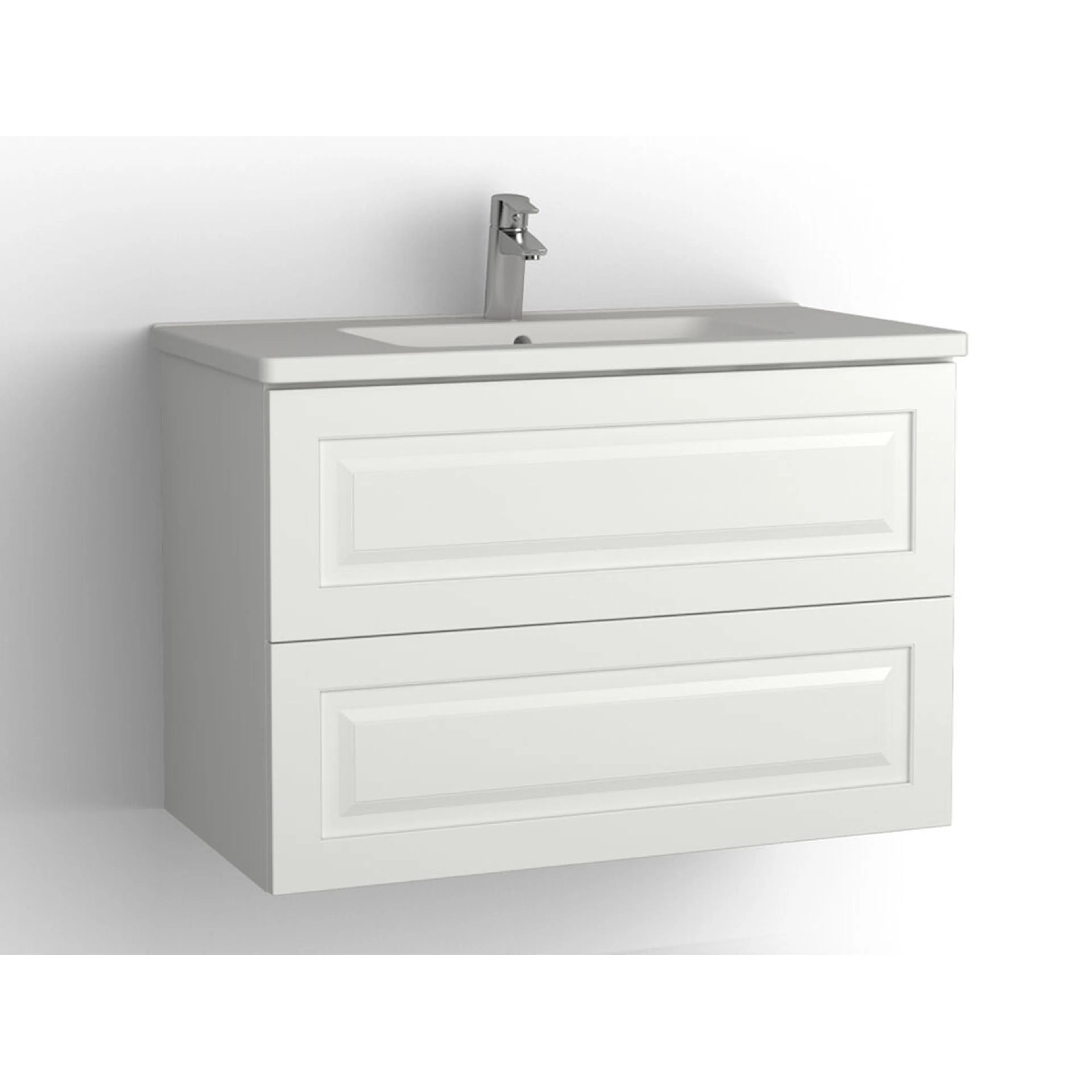 Tvättställsskåp Vedum Free 900 med 2 LådorVit, Edit, med Eluttag, utan Pushfunktion