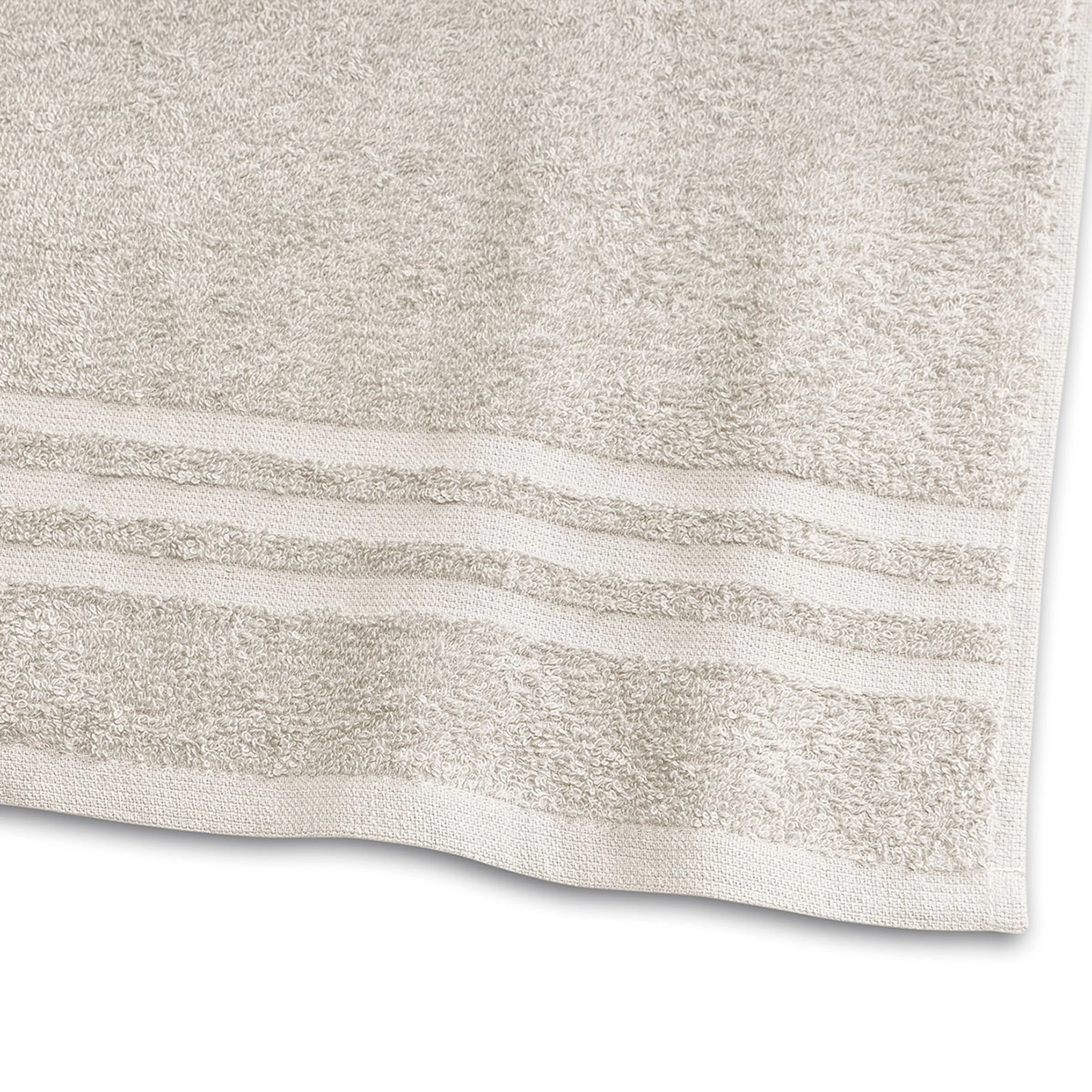 Slät frotté från Borganäs of Sweden med snygga vävda bårder. Finns i olika färger.