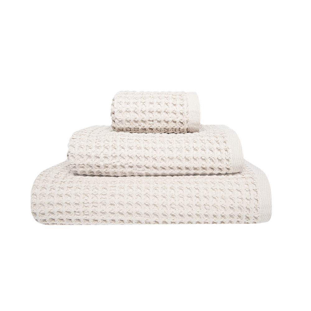 Handduk Favo från Sorema är tillverkad i 100% bomull, 420 gr/m2. Med sin moderna våfflade struktur är den superabsorberande, mjuk, extremt lätt och snabbtorkande.