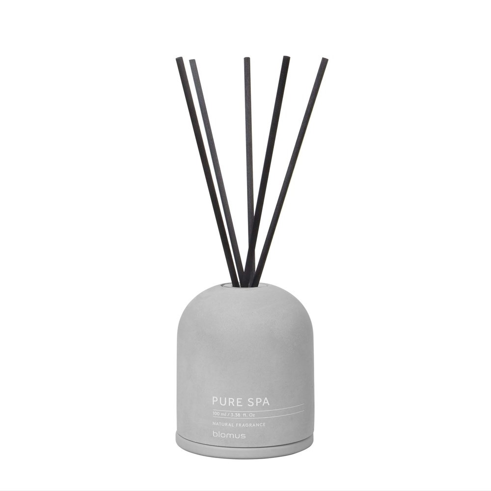 Doftpinnar Blomus Fraga Set är en underbar kollektion av nya lyxiga dofter för hemmet i återanvändbara flaskor. Intensiteten på doften justerar du genom att minska eller öka antalet vasspinnar. Set bestående av en glasflaska, ett hölje i betong att täcka flaskan med, 100 ml doftolja och 5 vasspinnar.