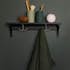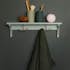 Handdukshängare Saga från Björbo Badrum är en hängare med en liten hylla och två praktiska krokar under att hänga exempelvis handdukar på. Hyllan är gjord av målad MDF med vackra detaljer.