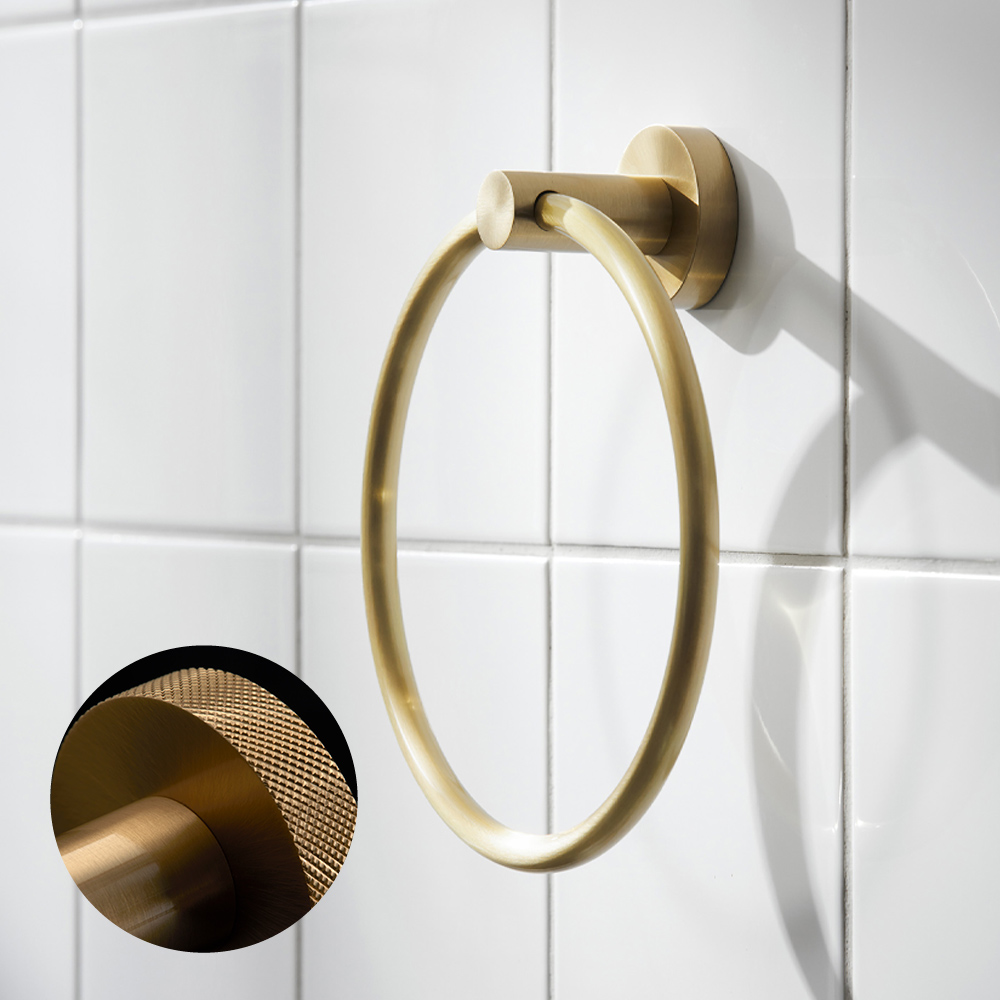 Handduksring från Miller Badrum. Väggplattans diameter är 45 mm.