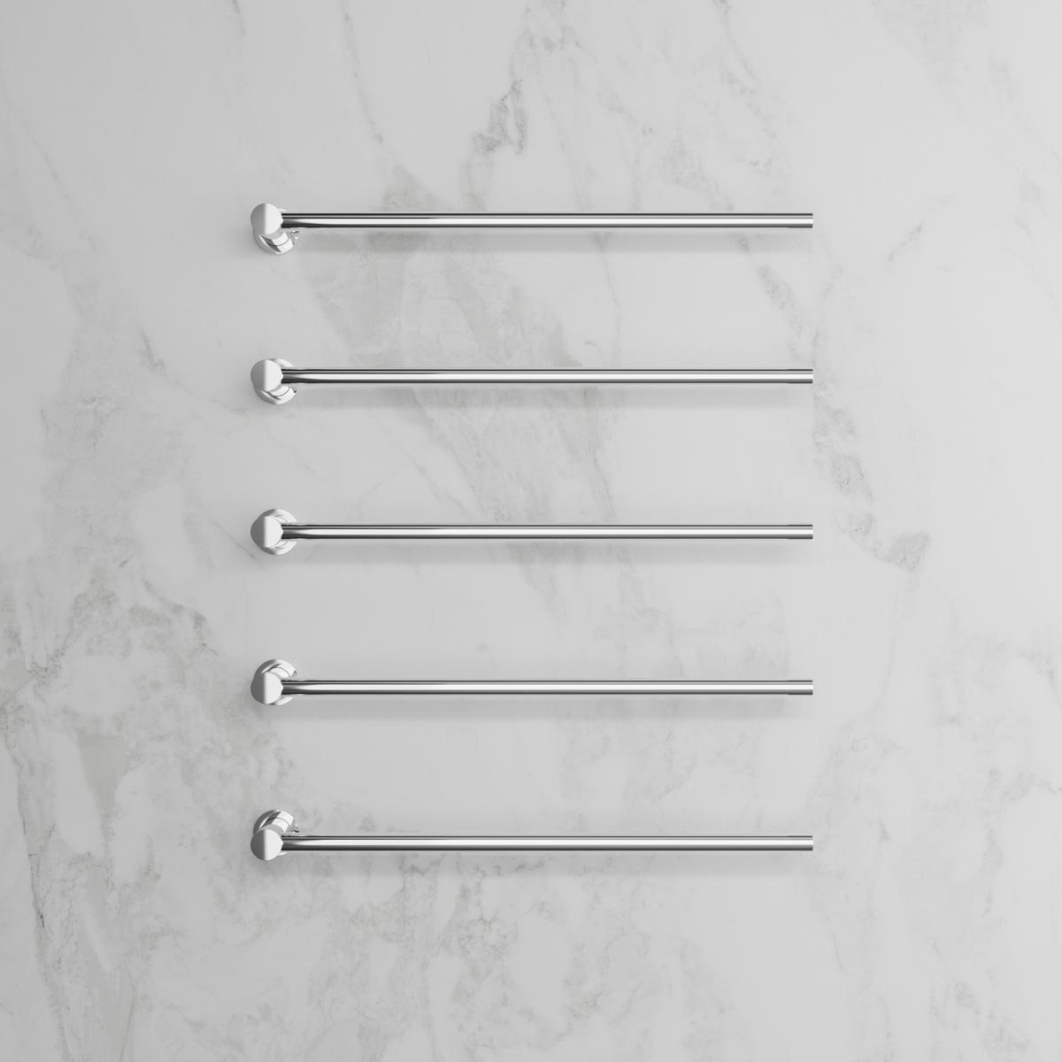 Handdukstork i en avskalad och ren design. I horisontell modell med justerbara stänger som kan installeras i båda riktningarna för maximal funktionalitet. Antalet stänger är anpassningsbart efter personlig smak och behov.